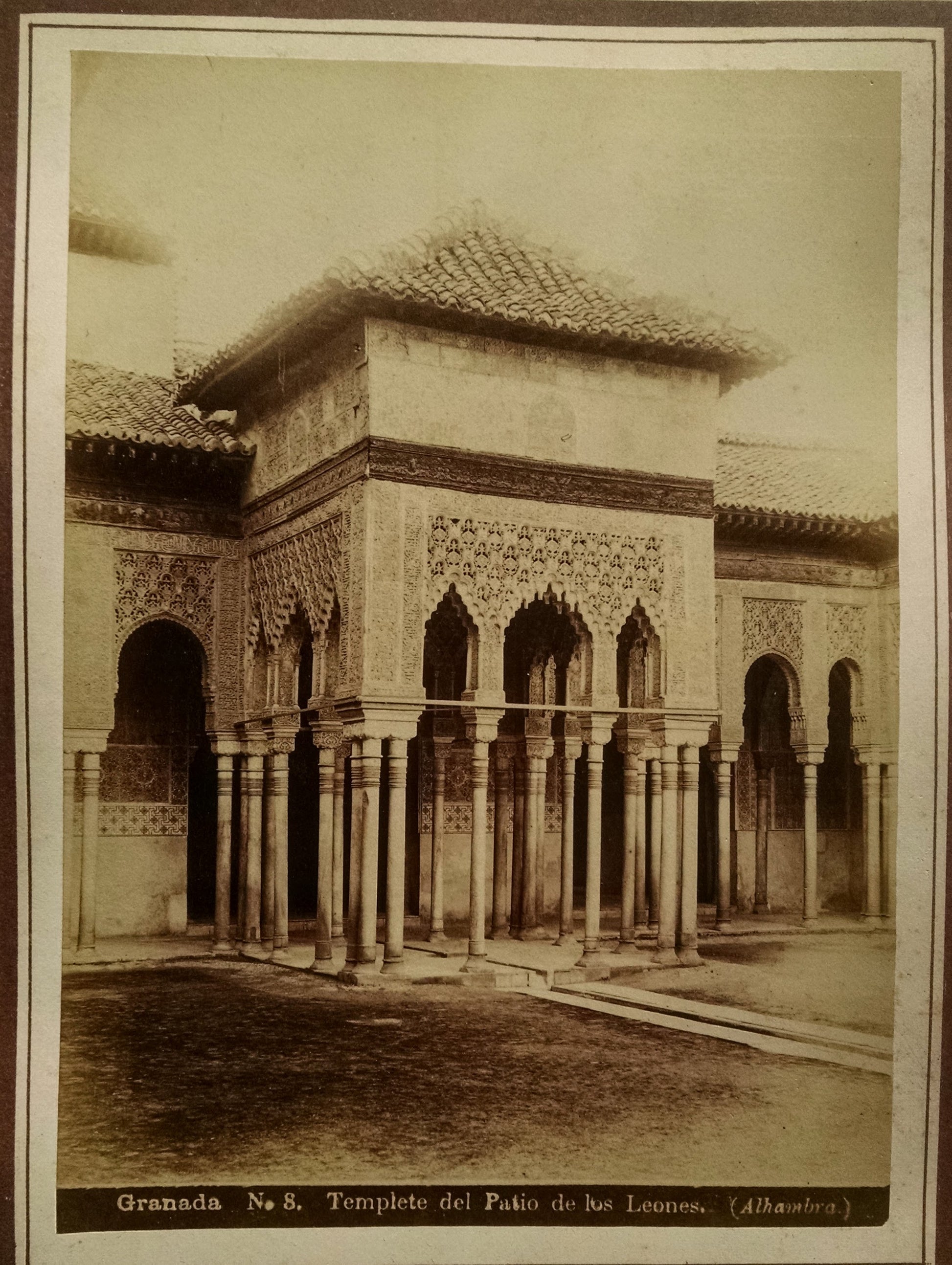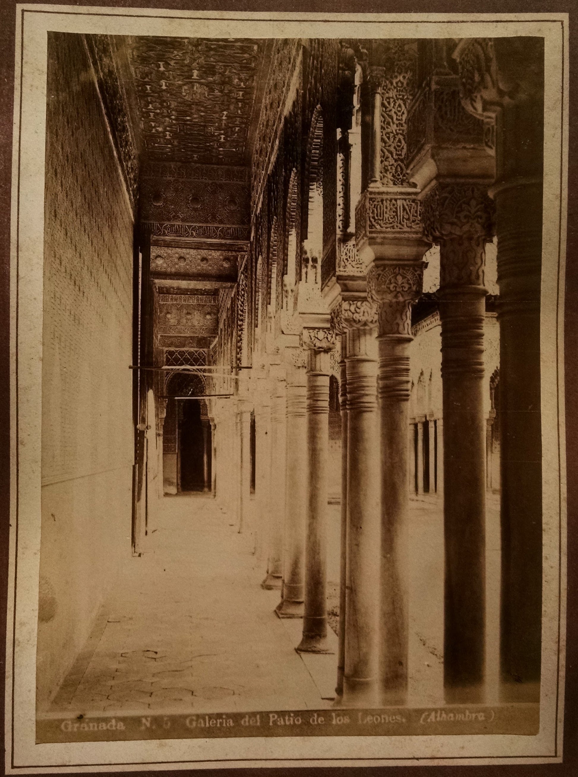 The Alhambra had fallen into disrepair until its “rediscovery” by travelers including Washington Irving in the early 1830s. The government and private commissions conducted a series of disastrous restorations and reconstructions of the palaces in the 1840s. By the 1880s, it was a popular destination; these photos document its touristic importance as well as the misguided 19th century restorations. They reflect a period of increased European orientalism and particular interest in the Alhambra’s synthesis of Islamic and European styles.
