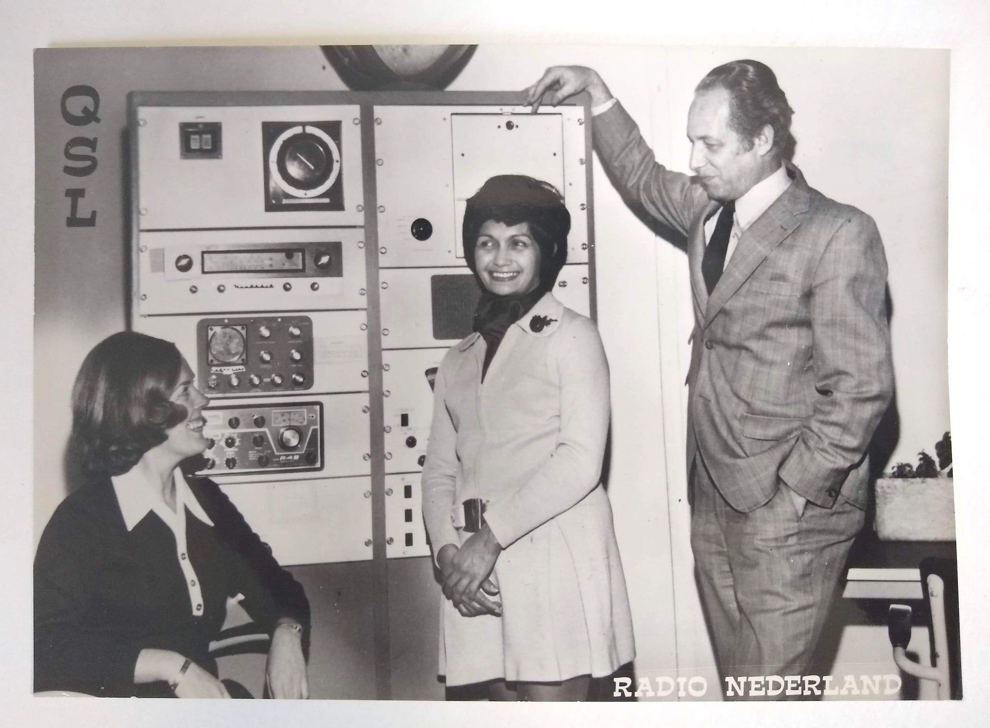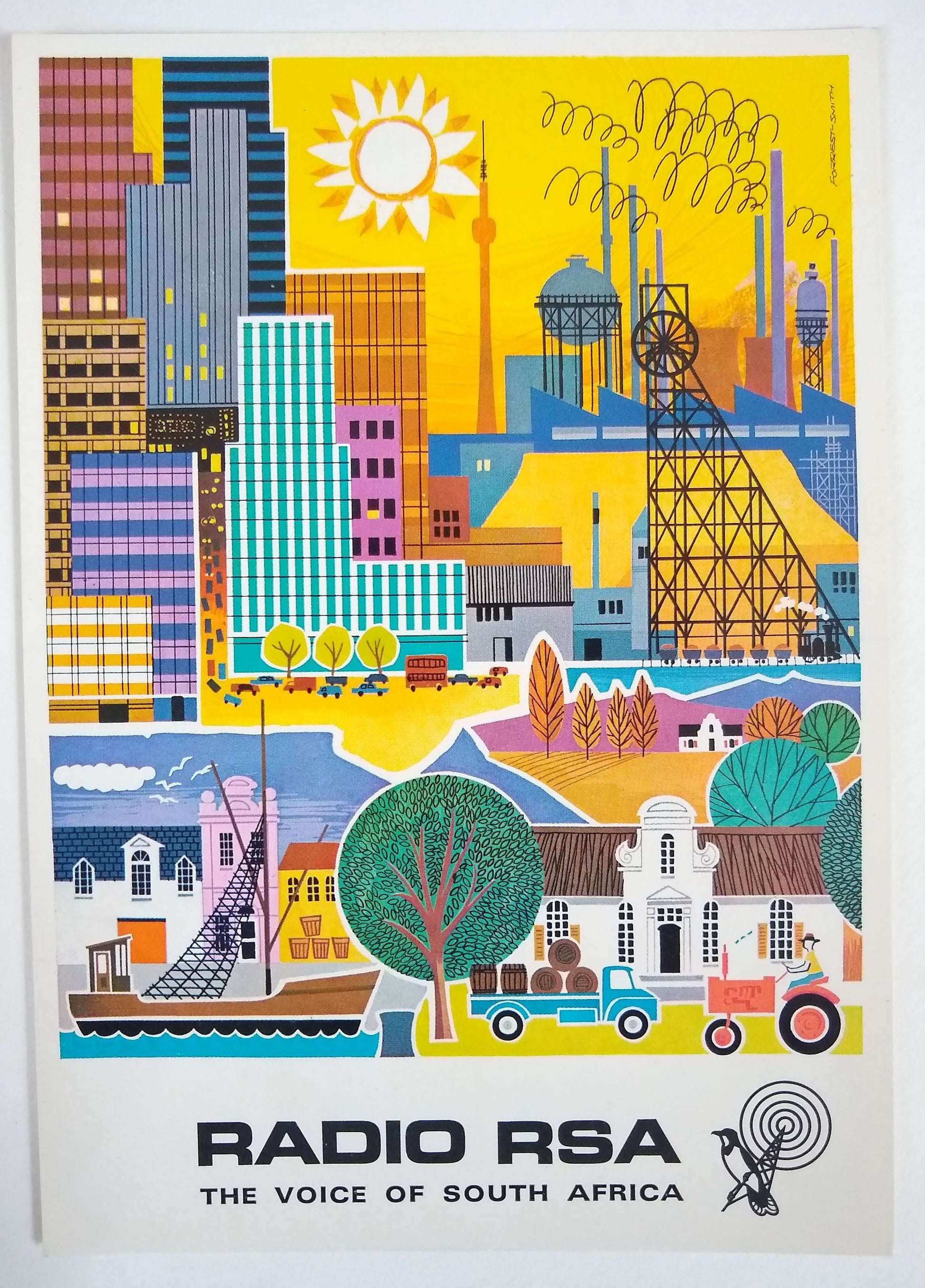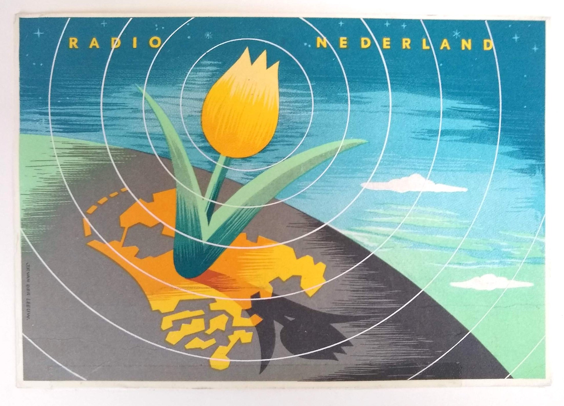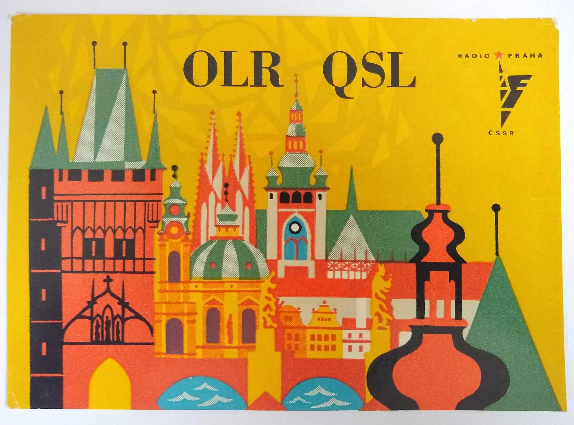 (Graphic Design) (International Typographic Style) (Radio) Collection of National Shortwave Radio Station QSL Cards, 1950-1965. A broad collection of state-sponsored graphic design spanning the golden-age of post-WWII advertising. The postcards incorporate elements of international typographic style and consumer advertising with local and national iconography. Together the collection demonstrates the adaptability and diffusion of mid-century modern design, and its importance to the progress of postwar international trade. QSL cards can acknowledge either two-way radio communications or one-way radio transmissions; most of those in the present group acknowledge a reception report sent by the collection's compiler, an amateur radio operator living in Lockport, NY. Sent and traded since at least the 1920s, QSL postcards have developed into an expressive format for individual operators and larger stations. The current group is distinctive because it focuses on national radio stations; their designs reflect elements of state-level propaganda programs and design. Represented nations include: Argentina, Australia, Austria, Belgium, Belgian Congo, Brazil, Bulgaria, Republic of Congo, Denmark, Egypt, Germany, Israel, Italy, India, Jamaica, Japan, Lebanon, Monte Carlo, Morocco, Mozambique, Netherlands, New Zealand, Pakistan, Peru, Poland, Portugal, Senegal, South Africa, Switzerland, Tahiti, and Turkey. A few cities or territories are also included: Antilles, Brazzaville, Dakar, Guadalupe, Tangier, Prague (CSSR) 74 postcards, most around 15 x 10.5 cm, two much larger, all in color except six bw real photo postcards and two with orig. photographic prints tipped in. Most with text in at least two languages (country of origin and English). Housed in plastic sleeves. Together with a folder including another 20+ examples and a small group of correspondence with national radio stations (1950-1960) for additional context. SOLD