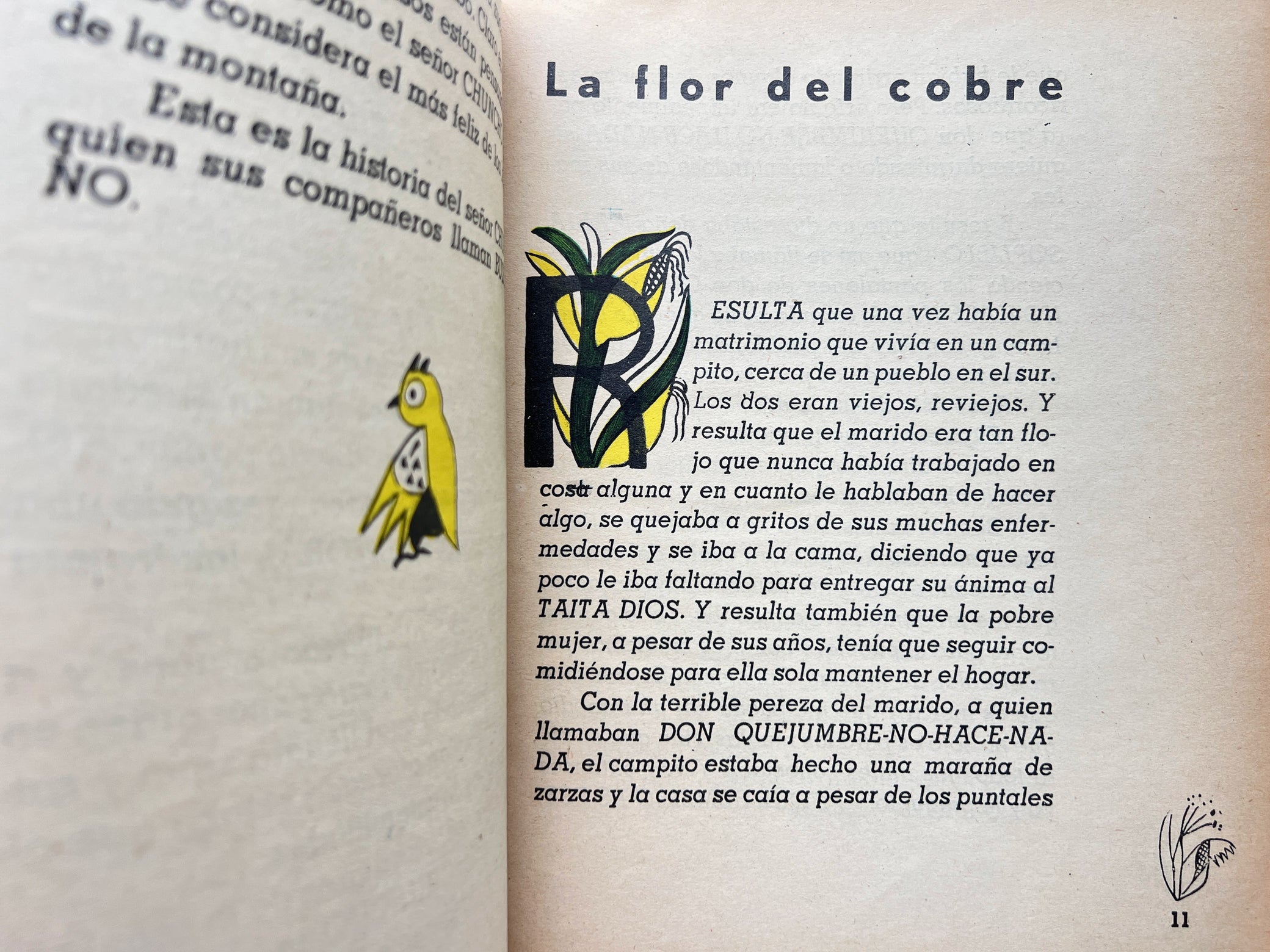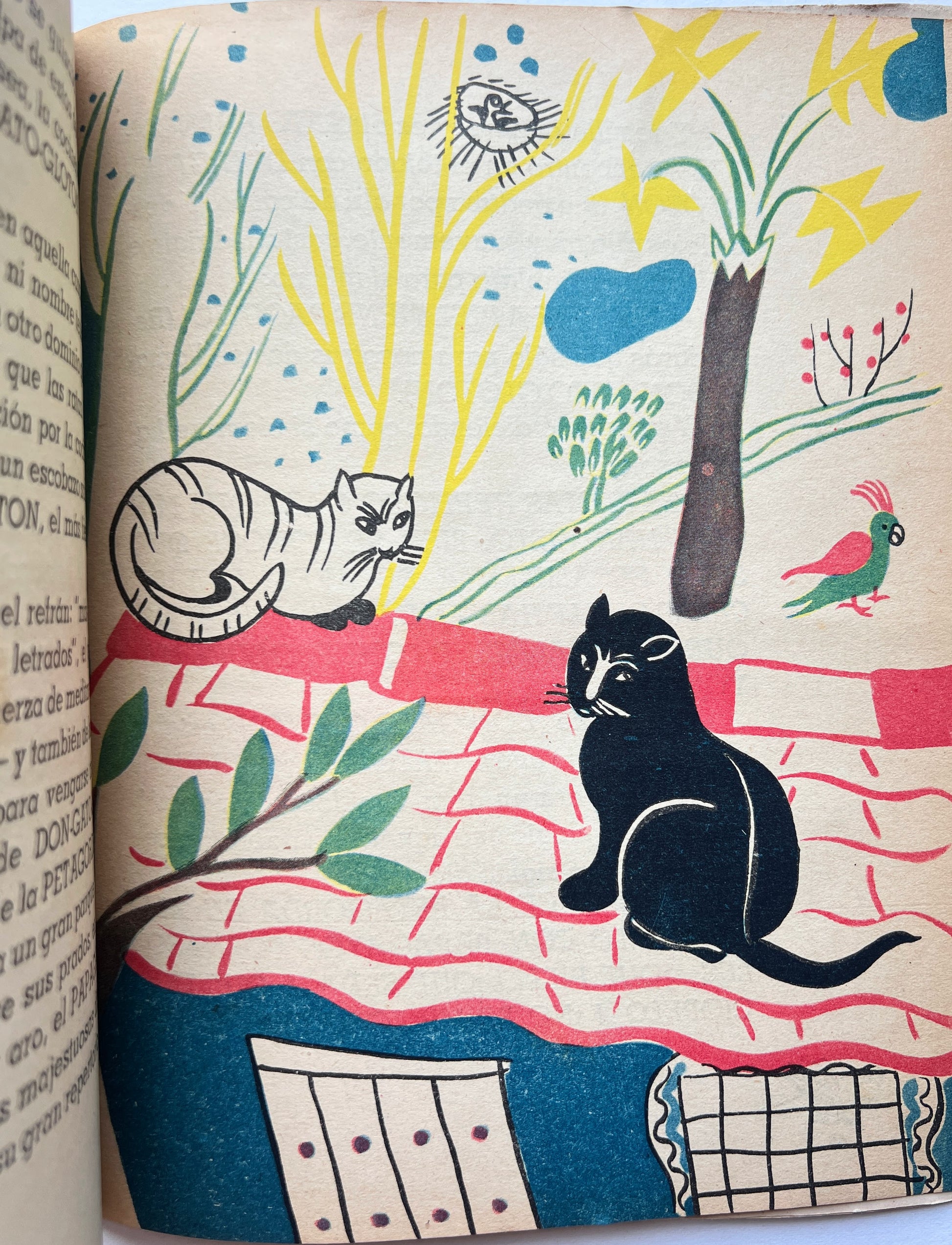 First edition of the beloved mid-century Chilean children's book, Cuentos para Mari-Sol. Authored by the award-winning novelist Marta Brunet (1897-1967) and the only edition with exuberant color illustrations by Maria Valencia, one of four participants in the groundbreaking neocubist Exposición de Diciembre (often described as the first abstract art exhibition in Chile). Known from a single other copy, at the Biblioteca Nacional de Chile (BNC), the first edition seems to have been rarely consulted by most Brunet bibliographers, who do not fully differentiate it from all subsequent editions. One of the seven stories appearing in the first edition is missing from all others, and the second edition, published approximately 25-30 years later, was much enlarged, including an additional thirteen stories (Los Cuentos de Mama Tolita) written many years after the original Cuentos para Mari-Sol. Brunet was a feminist novelist, one of the earliest Latin American women writers who were not “simply displaying the ways in which women have been subordinated and excluded from the conventional social contract” but actually imagining “alternative social arrangements not based on fixed gender identities or conventional gender roles.” She was deeply involved in the Chilean suffrage movement, and her writing “violated in particular the limits of a rigidly class-based society, attacking ‘good customs’(...) The demand for boldness in the behavior of women linked to the rise of the suffrage movement included above all the use of language.” Both Brunet and Valencia had traveled to Europe in the 1910s and 1920s and were known for their participation in avant-garde intellectual circles there and in Chile, Argentina, and Venezuela. In addition to their involvement in the suffrage movement, they were also involved in Chilenidad and Americanismo, which prioritized local and indigenous references and expressions. Gabriela Mistral wrote of Brunet: “se ha amamantado de chilenidad. Chilenidad de paisaje, de acento, de costumbre, de carácter.” Cuentos de Mari-Sol is an example of Brunet's early, rural chilenidad: familiar tropes of children's folktales placed in a Chilean context (e.g. a protagonist condor; and the landscapes of Chile, rather than Europe). After Mistral, Brunet was the second woman to receive the National Prize for Literature, in 1961.