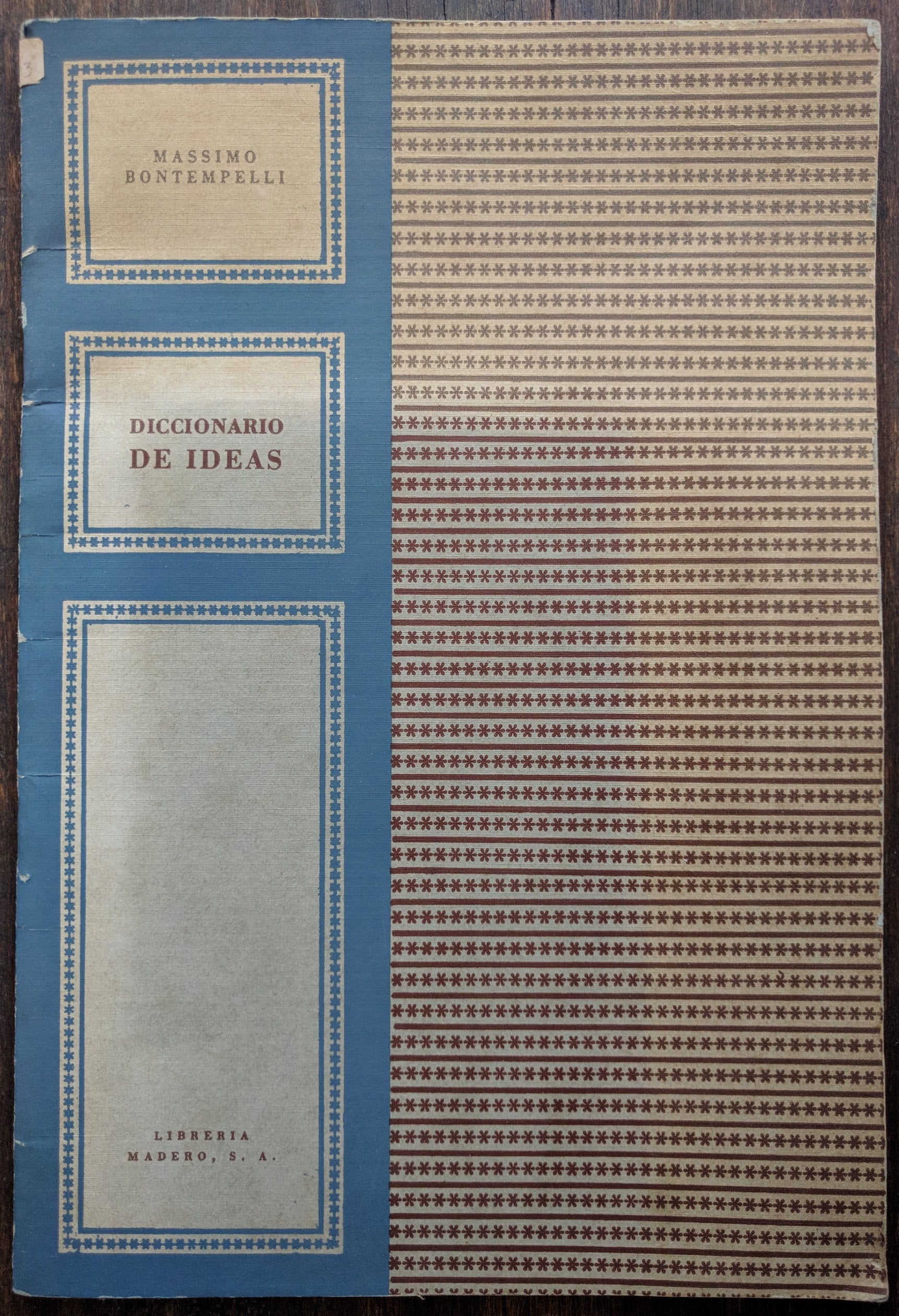[Rojo, Vicente. (Illustrator)]. Bontempelli, Massimo. Pacheo, José Emilio, Trans. Diccionario de ideas. Me´xico, D.F.: Libreria Madero, 1962. Small 4to, [14] leaves; 11 full-page color pls., one corner chipped, final leaf, pages sl. toned; in orig. decorative wraps, sunned, with small shelf sticker. Librería Madero was founded in Mexico City in 1939 by an exiled Spanish Republican, Tomás Espresate. In the early 1950s, Espersate and his partner, Eduardo Naval, opened a small press, later directed by the Mexican painter and graphic designer Vicente Rojo. Librería Madero became well known for its fine press and art editions. This example is one of a series of annual limited editions produced by Rojo—who was responsible for the illustrations and typography—and presented to friends of the press as a New Year's gift. Evidently the eminent Mexican poet, Pacheco, was often a collaborator on these projects and here he provides the translation for Bontempelli's brief text, which had recently been discovered in his papers at the time his death in 1961. Rojo described this end-of-the-year commemoration: Cada una era diferente a la anterior, lo que me permitía una vez más (con la complicidad anónima de José Emilio Pacheco), buscar nuevos divertimentos visuales. (Entre paréntesis quiero aclarar que en el diseño gráfico, como en la vida, el humor me parece indispensable.) OCLC records no US holdings. SOLD
