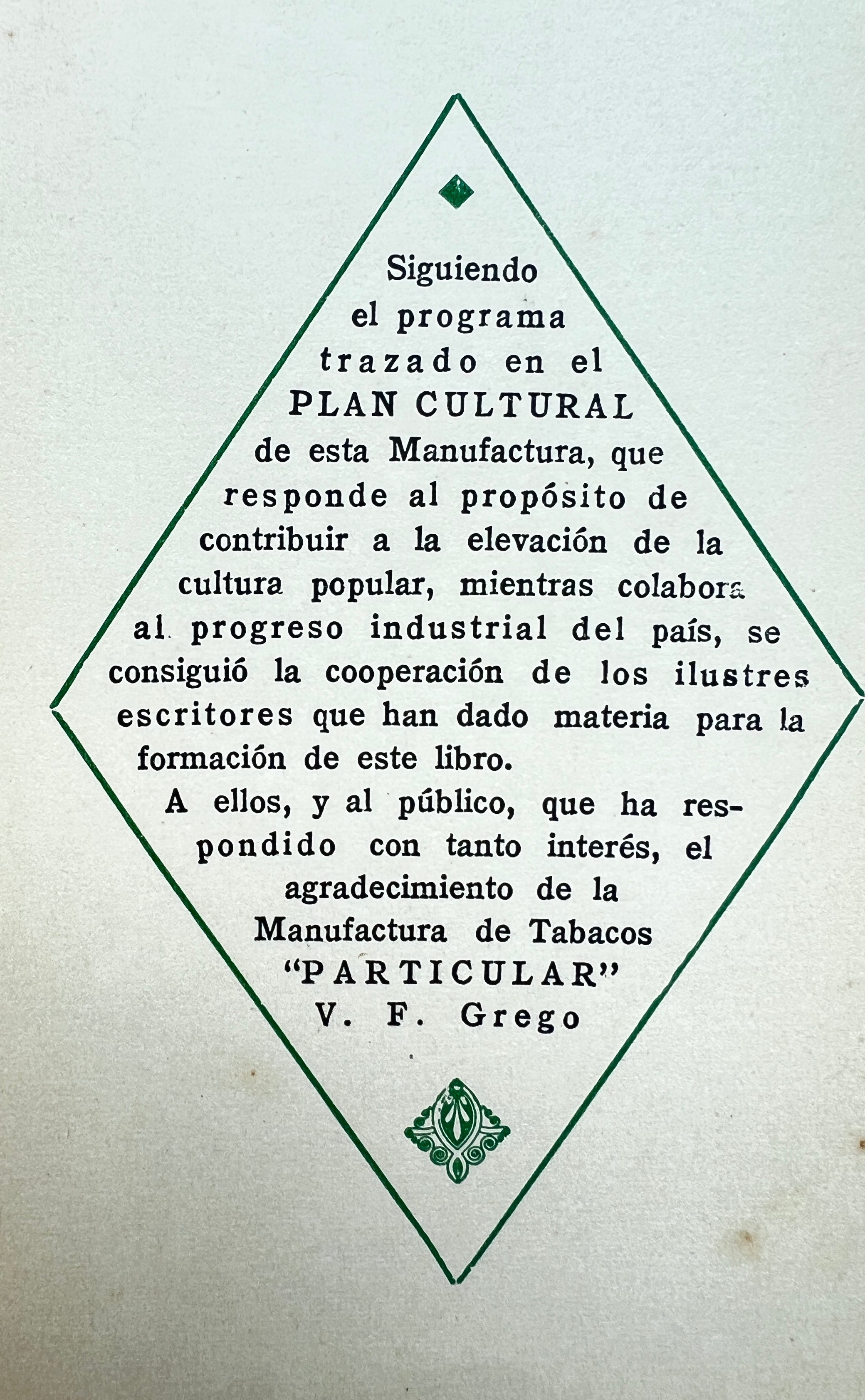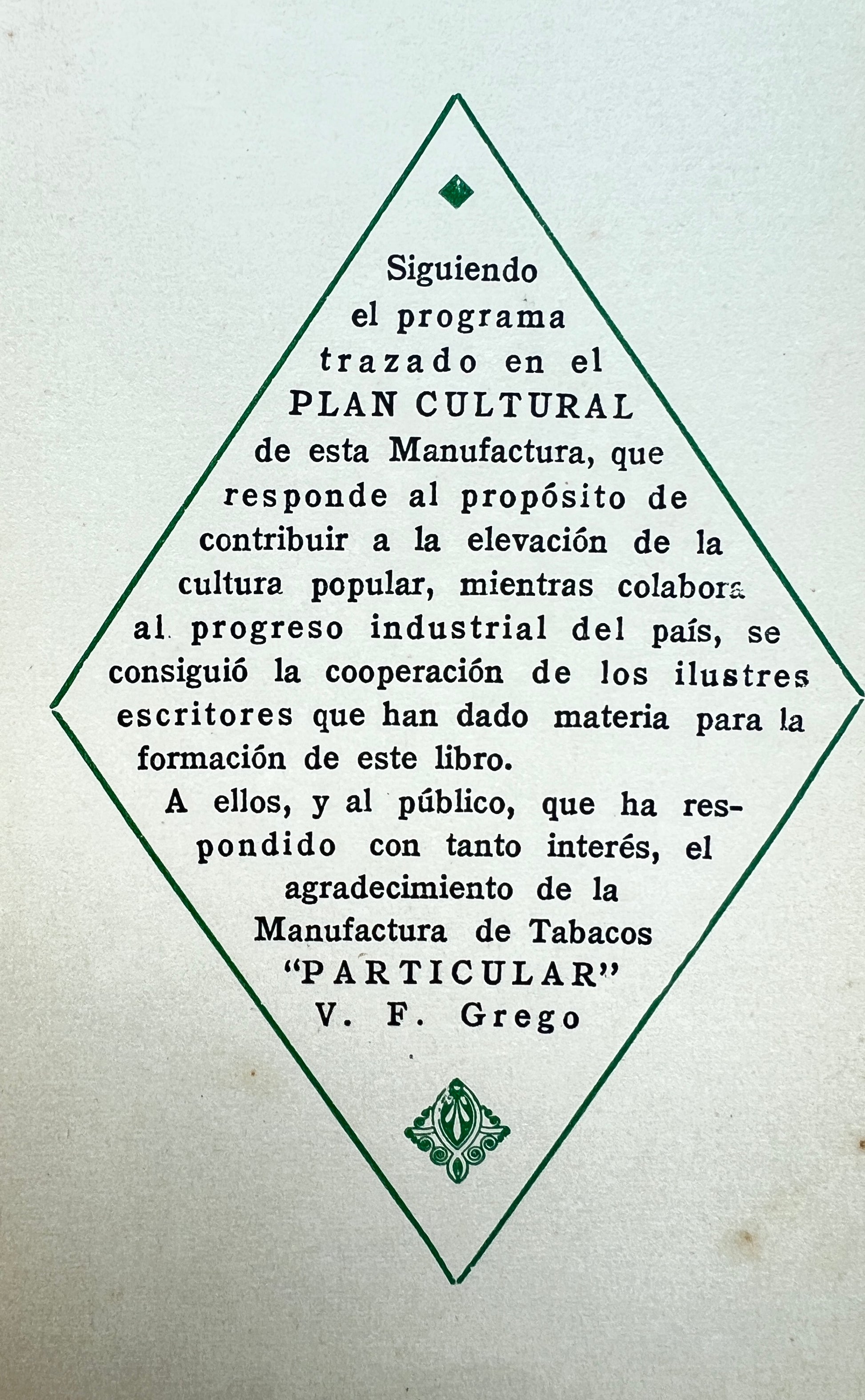 The volume contains the first published iteration of Ocampo's dogmatic feminist literary manifesto: La mujer y su expresión. An important item for Ocampo bibliographies and a curious artifact of an industrial manufacturer's “cultural plan” that brought together “illustrious” hispanic authors, political philosophers, scientists, and poets (many with socialist beliefs). OCLC lists 2 copies in North America: BYU and Univ. of Victoria.
