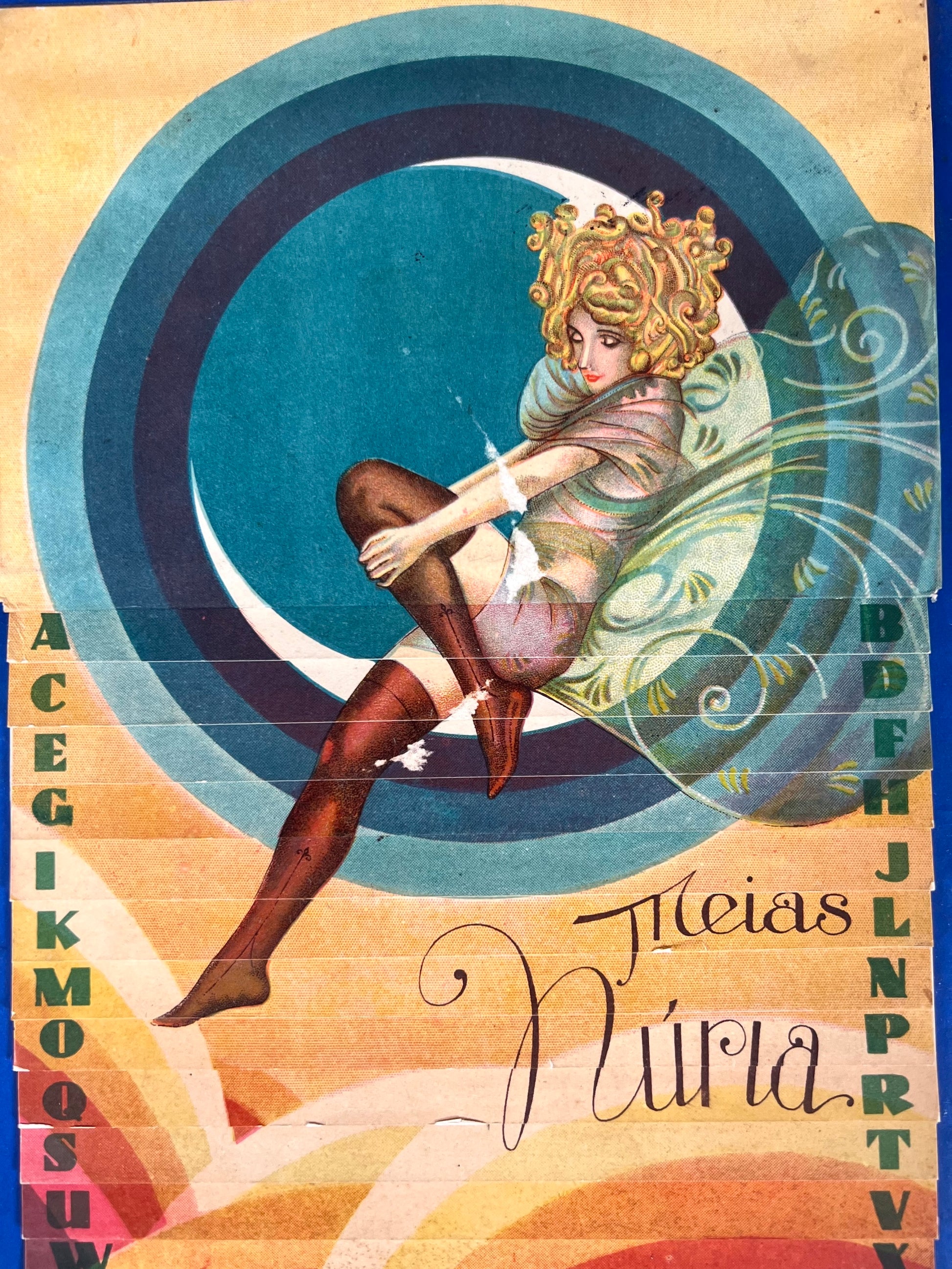 Lovely directory, each index page with a peppy promotional suggestion for Bosch & Baylina's socks or expressing support for national industry and economy. The Portuguese factory was owned by Ramon Baylina, a supporter of the fascist Spanish Falange during the Civil War. As the president of Casa de España de Porto, he organized fundraisers for Spanish fascist causes and used his factories to host volunteer workshops to fabricate clothing for Spanish Falange soldiers. Curiously, Baylina also donated socks throughout the war to the Spanish Republican side. “Calce a meia EGARA e não se arrependerá.” No Bosch & Baylina materials recorded in OCLC.