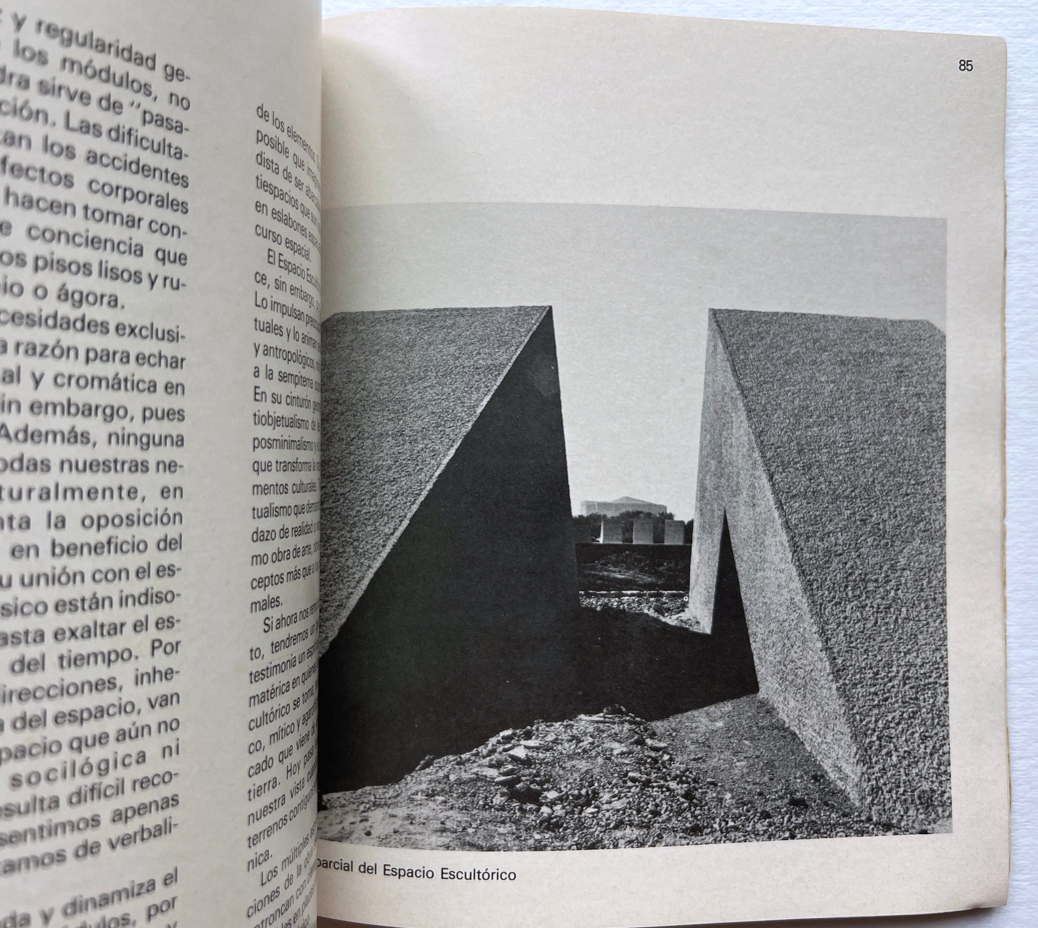 (Land Art) (Abstract art) (Mexico) Centro de Investigación y Servicios Museológicos, Universidad Nacional Autonoma de Mexico. El Espacio Escultórico. Mexico, D.F.: UNAM, 1980. 21.7 cm, 119 pp.; trilingual catalogue, profusely illus. in b/w, thumbed, with crease at fore corner affecting early pages; in color wrappers worn with creases, starting to separate at foot of spine, small chip in rear wrap.