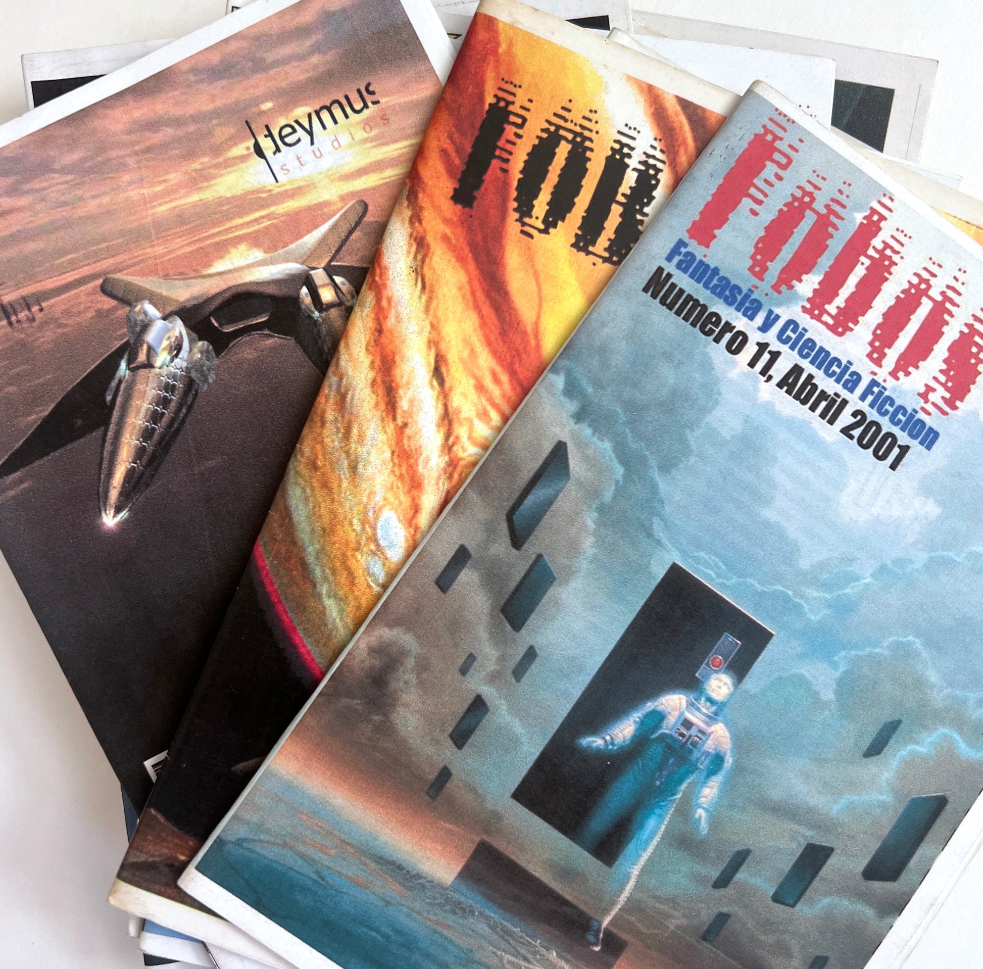 Saavedra, Luis, Ed. Fobos: Fantasía y Ciencia Ficción. Nos. 8, 11-15, 17, 18, 20, 21. Santiago de Chile: 2000-2004. 10 vols.: 22 cm, most 30-44 pp.; scattered b/w illus.; stapled color illus. self-wrappers.