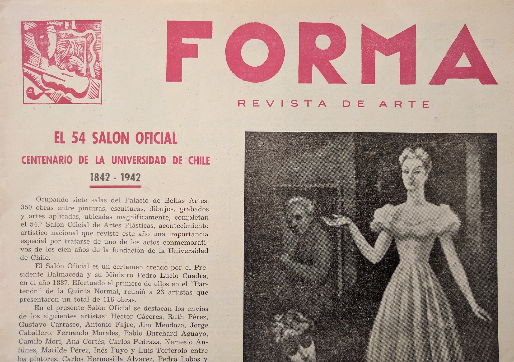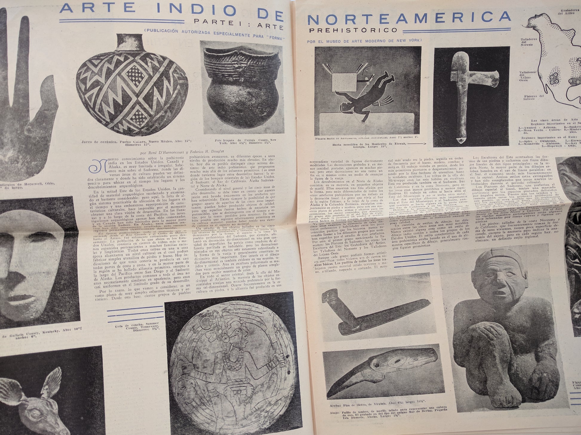 Forma: Revista de Arte. Nos. 6-7 (Noviembre-Diciembre 1942). Santiago de Chile. Tabloid, [12] pp.; profusely illustrated, stapled color self-wrappers, center fold creased, otherwise very good.