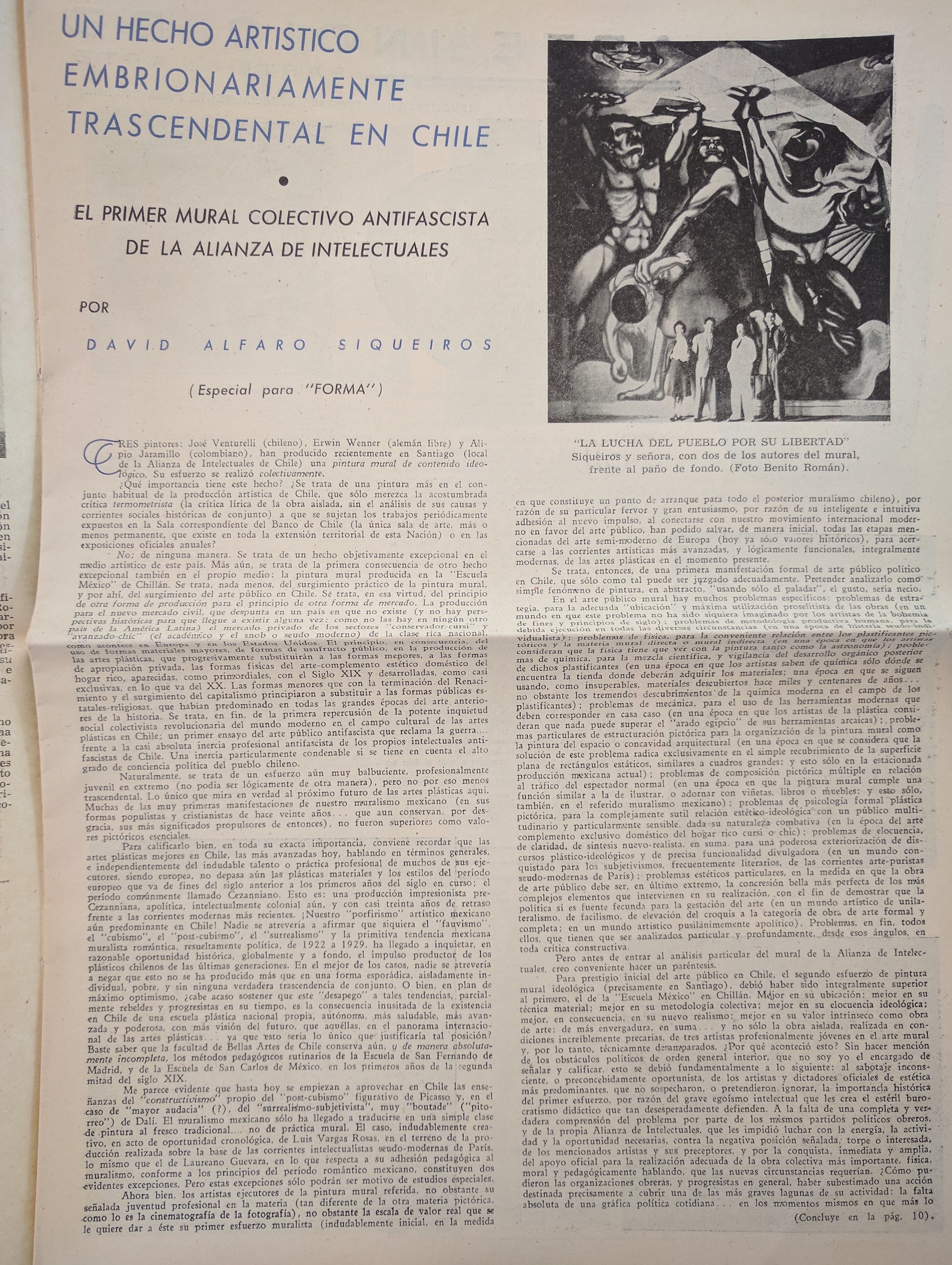 One double issue of the short-lived and uncommon Chilean avant-garde arts serial, published in thirteen numbers by editor Gregorio Gasman from 1942-1943. This issue with a special essay by David Siqueiros on the first antifascist Chilean mural project and a feature on prehistoric art of North America (present-day Canada and US).