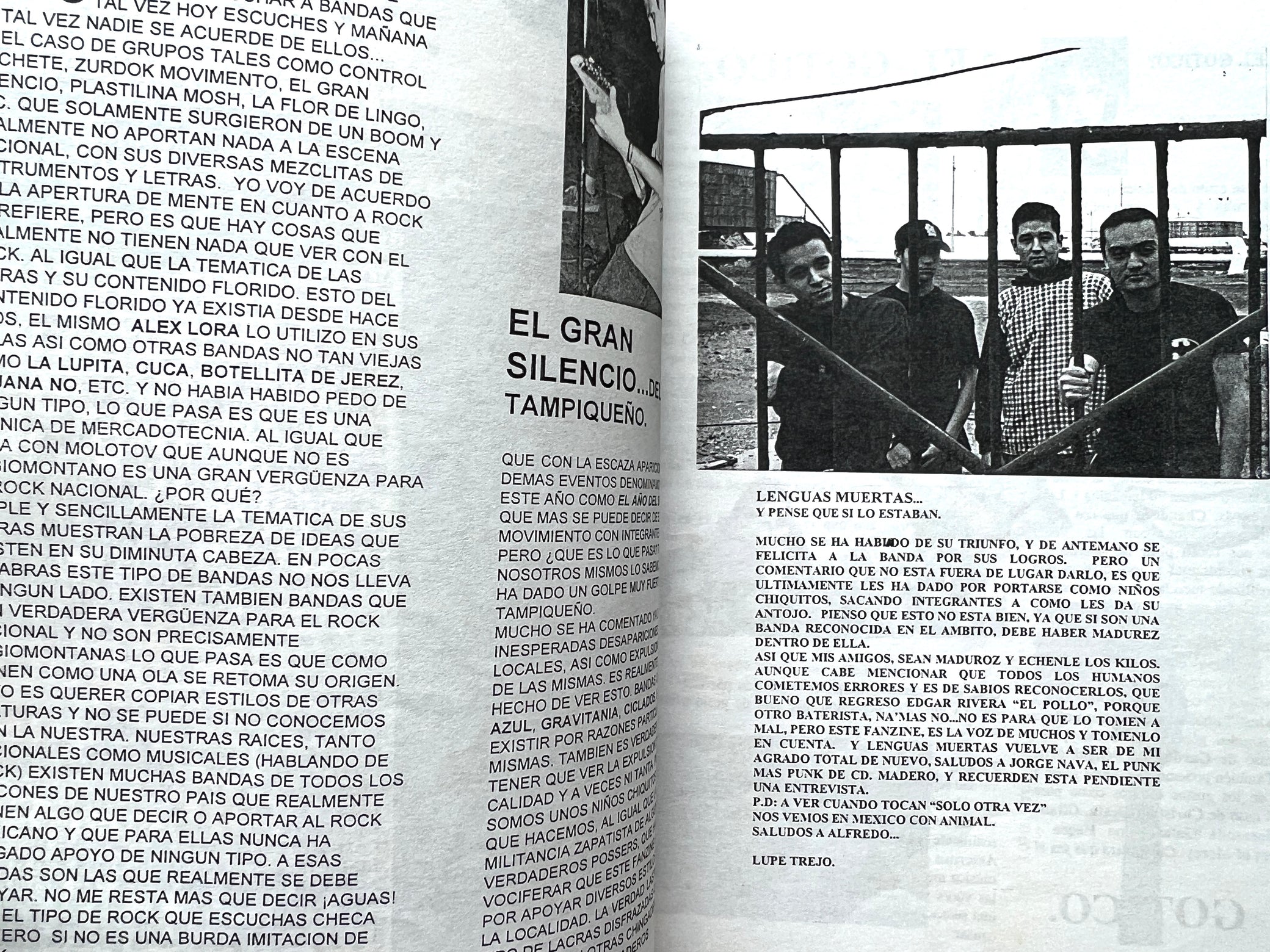 Four Mexican Fanzines, 1989-1999. Four appealing examples of Mexican self-publishing, documenting aspects of the thriving hardcore metal scene in Mexico; its international scope (especially as related to the Mexican diaspora); and the overlap of the musical and countercultural movements in the 1980s and 1990s. Comprised of: Mutilador Zine. No. 5 (First Anniversary issue). Mexico, D.F.: np, 1989. 27.5 cm, 22 pp.; bw illustrations mostly reproducing photographs and band art; in stapled pictorial wrappers. VG. Definitive and ambitious bilingual Mexican metal-thrash and counterculture fanzine with contributing authors in Mexico, USA, and Panama. Many interviews with Mexican bands and international bands playing in Mexico. “If there is a fanzine that defines the metal spirit of the 80s, it is ‘Mutilador'. .. it was made with rudimentary elements: paper intervened with a typewriter, markers, scissors, Pritt adhesive pencil and, that yes, a lot of creativity. Announcements of gigs, letters, boxes and more boxes, memories…” Eight issues were published between 1987 and 1989. Tumba Vacia Zine. No. 12. Mexico, D.F.: np, 1999. 28 cm, 19 pp.; profusely illus. with bw reproductions of orig. graphic art, and many examples of 1990s PC clipart and fonts; stapled pictorial wrappers. Bilingual. VG-. Christian metal zine edited by Iram Gomez Torres, with contributions from authorsbands in Malaysia, Argentina, Cuba, and the USA. Focused on the Christian scene and its relationship to the larger metal world, but also on equity and racism. “Una vez más levantamos nuestra voz hacia un fin de siglo por los pueblos olvidados por la modernidad y el racismo. No terminando de entender porque unos billetes valen más que la propia vida humana, o como el color de nuestra piel puede cambiar el curso de una vida, siendo que Jesus derramo su sangre por todos nosotros como humanidad, dándonos así el valor de su sangre.” Raza Viva: Fanzine Tampico – Madero. No. 7. Tampico, Tamaulipas: np, nd (ca. 1997-1998). 22 cm, (34) pp.; bw illustrations throughout; in stapled pictorial wrappers. Metal and goth fanzine. With reviews but also poems, articles, an homage to Gabriel Garcia Marquez, and a note on the participation of women in the Mexican metal scene. Cultura Callejera Colectivo. Fanzine. No. 2. Mexico, D.F.: np, nd (ca. 1996). 21 cm. 32 pp.; reproducing orig. comix and art; in stapled dual color pictorial wrappers with folding leaf, opening to reproduction of a photograph of El Tri frontman Alex Lora, wrappers worn and bumped. Counterculture fanzine, focused on street culture and Mexican rock. Articles on various subjects: indigenous rights, music, feminism, child abuse, and other general anti-establishment topics. Cited: Israel Morales. ‘Mutilador': libro que capta el espíritu del fanzine metalero de los años. 2022. https:www.milenio.comculturaliteraturafanzine-mutilador-resena-del-libro-sobre-metal SOLD