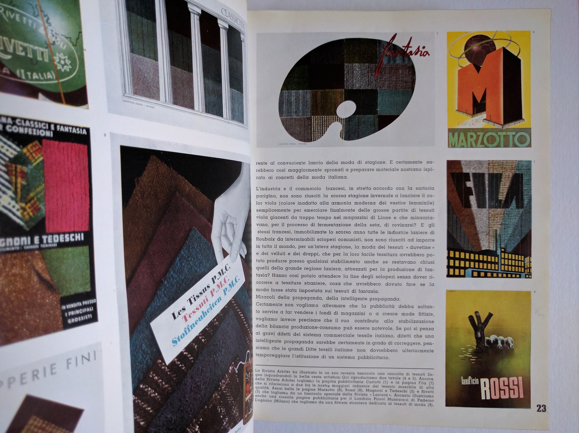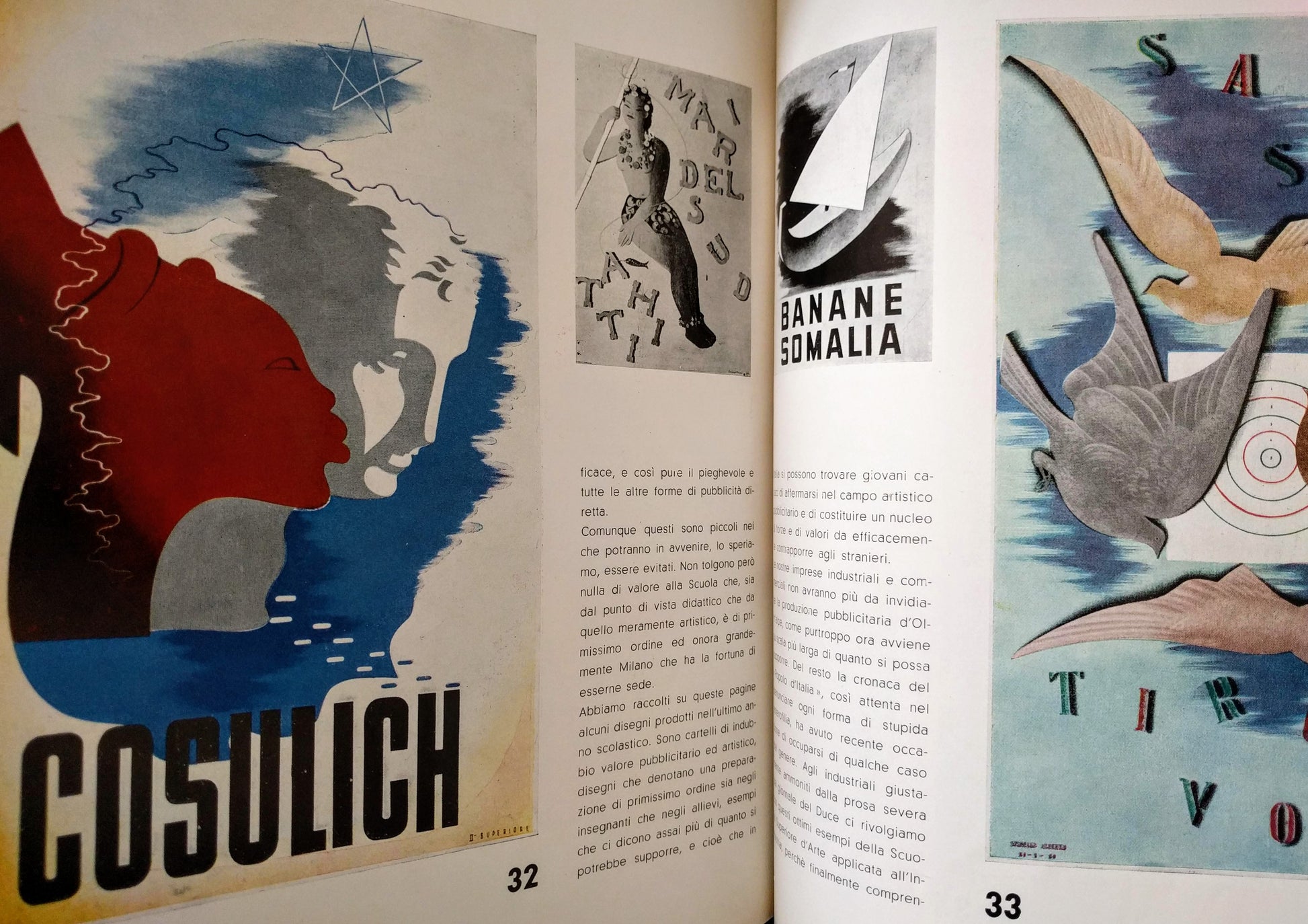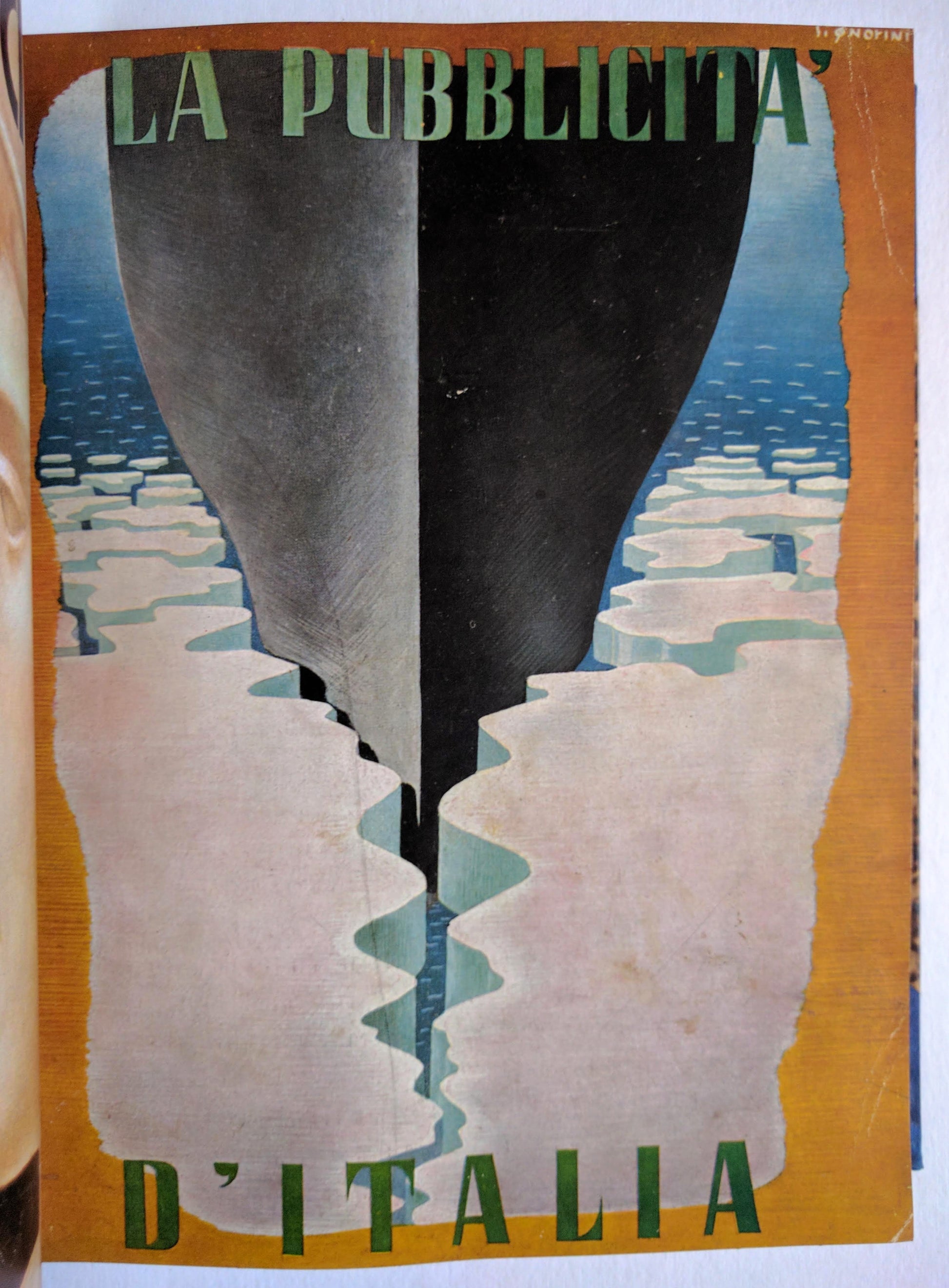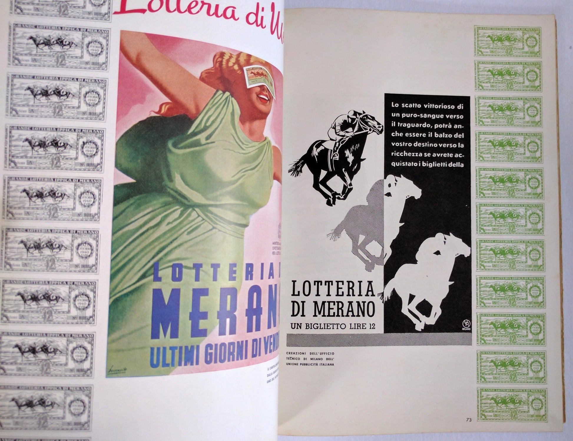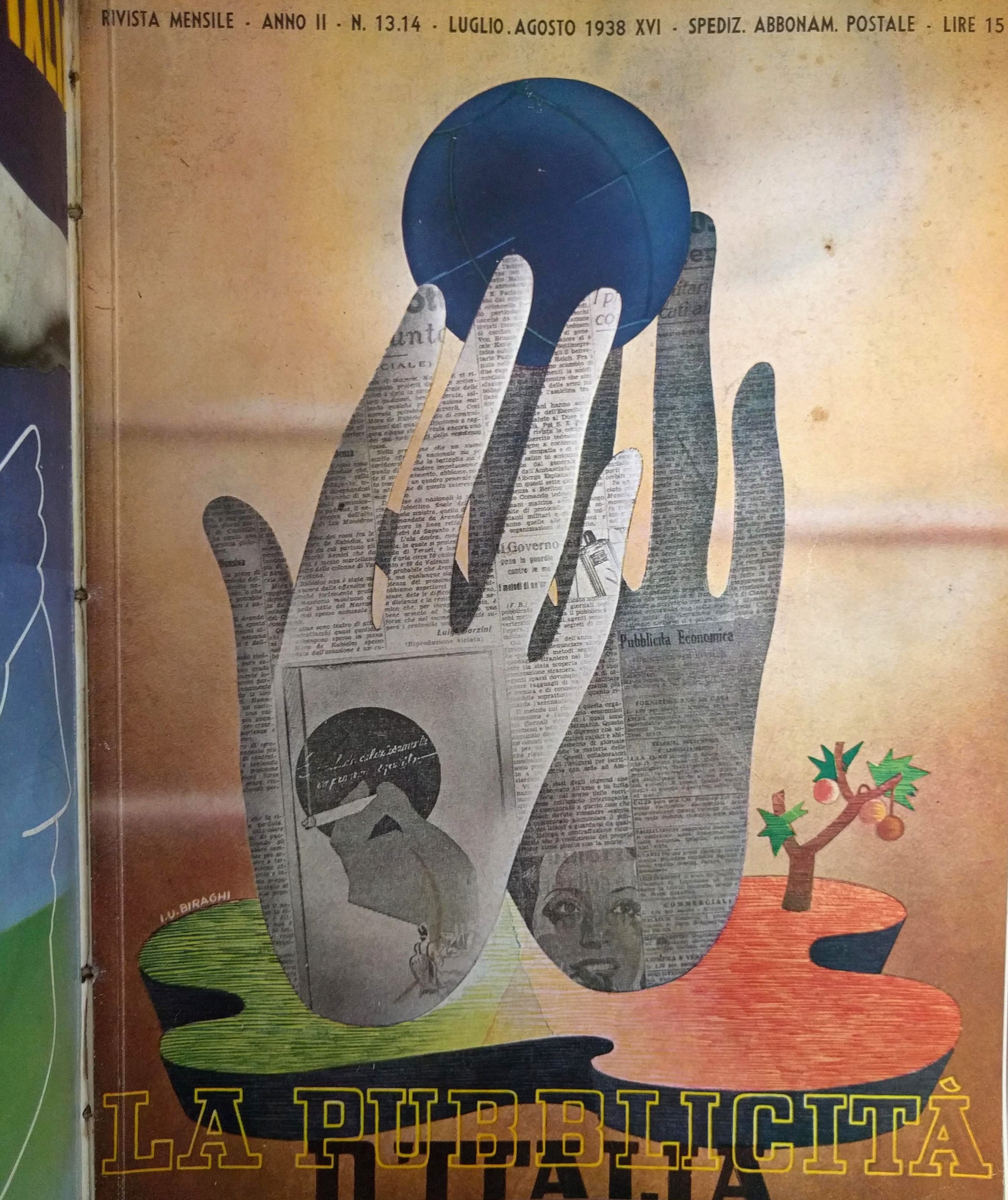 La Pubblicita̧ ̀ d'Italia: [Organo ufficiale del sindacato nazionale fascista agenzie e case di pubblicita̧ ̀]. Nos. 5-20, 25-30, 37-38, and 43-46. Milan: N.p., 1937-1941. 25 numbers in 11 issues: 7 bound in 2 vols. (nos. 7-18 and 43-46), 4 loose (nos. 5-6, 19-20, 25-30, and 37-38). 4to, approx. 90-150 pp. each; illustrated throughout, many in color, reproducing Italian advertising campaigns for various commercial, industrial, domestic, and agricultural products or brands, with articles on modern marketing strategy, mass communication, the art of propaganda, and collectivism, with a variety of printing techniques and papers, no. 43-46 with numerous folding plates, most issues good to very good internally, no. 7-8 final ten leaves defective, no. 25-30 with an abraded first leaf; bound issues with orig. pictorial wraps (except the back cover of no. 7-8 and the front cover of no. 43-46), loose issues in orig. wraps, no. 5-6 separated with losses to spine, no. 37-38 with rough 4 in. loss to front top edge. A substantial run (25 of 60 numbers) of the remarkable Italian advertising review, much of it by or about the Fascist Party's official ad agency, the Unione Pubblicità in Italia (UPI) and its associated artists, many of them well-known futurists. The publication captures the rich collaboration between the Italian avant-garde, advertisers, and propagandists in extravagantly produced issues that highlight fascism's politically conscious advertising. In particular, it captures the Italian fascist affirmation of mass culture, modern consumers, and the psychology of advertising. Features on specific markets in advertising include comestibles like food, liquor, and tobacco; arts including cinema, theater, fashion, and exhibitions; science and technology; industry; automobiles and motorcycles; tourism; and the armed forces. Essays discuss economic and technical aspects of advertising, including strategies and psychology, but also formal elements of color, type, design, etc. Also covered are various advertising media including film, television and radio. Intended to demonstrate the innovation and sophistication of modern Italian advertising, the editors experimented with typography, illustrated plates, intaglio and block printing, and unusual papers ranging from laid to heavy gloss and newsprint. A special issue on Giambattista Bodoni and Gutenberg includes a reproduction of the type form for the title page. Altogether an exhaustive survey of Italian advertising during the fascist period—and the artists who worked in its service, including: Fortunato Depero, Guido Marussig, Alredo Calvadini, Boccasile, Calze, Carlo Dinelli, Erberto Carboni, Dudovich, Biraghi, etc. Early issues are scarce. OCLC lists only a few institutional holdings worldwide, all with partial or single-issue holdings. There are two locations recorded in North America: the Library of Congress (no physical copies; the OCLC record appears to be derived from their binding catalog, which references two issues never? held) and UI-UC's copy, which is nearly complete. SOLD