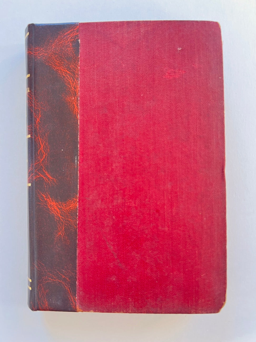 First edition. 18.9 cm; 254, [12], pp.; pages darkened, first three leaves with fore-edge lightly chipped. Half-leather, spine with gilt title and author’s name. Author's ink dedication to the Cuban poet Arturo Alfonso Roselló on epigraph page, signed and dated “Habana, 1929.”