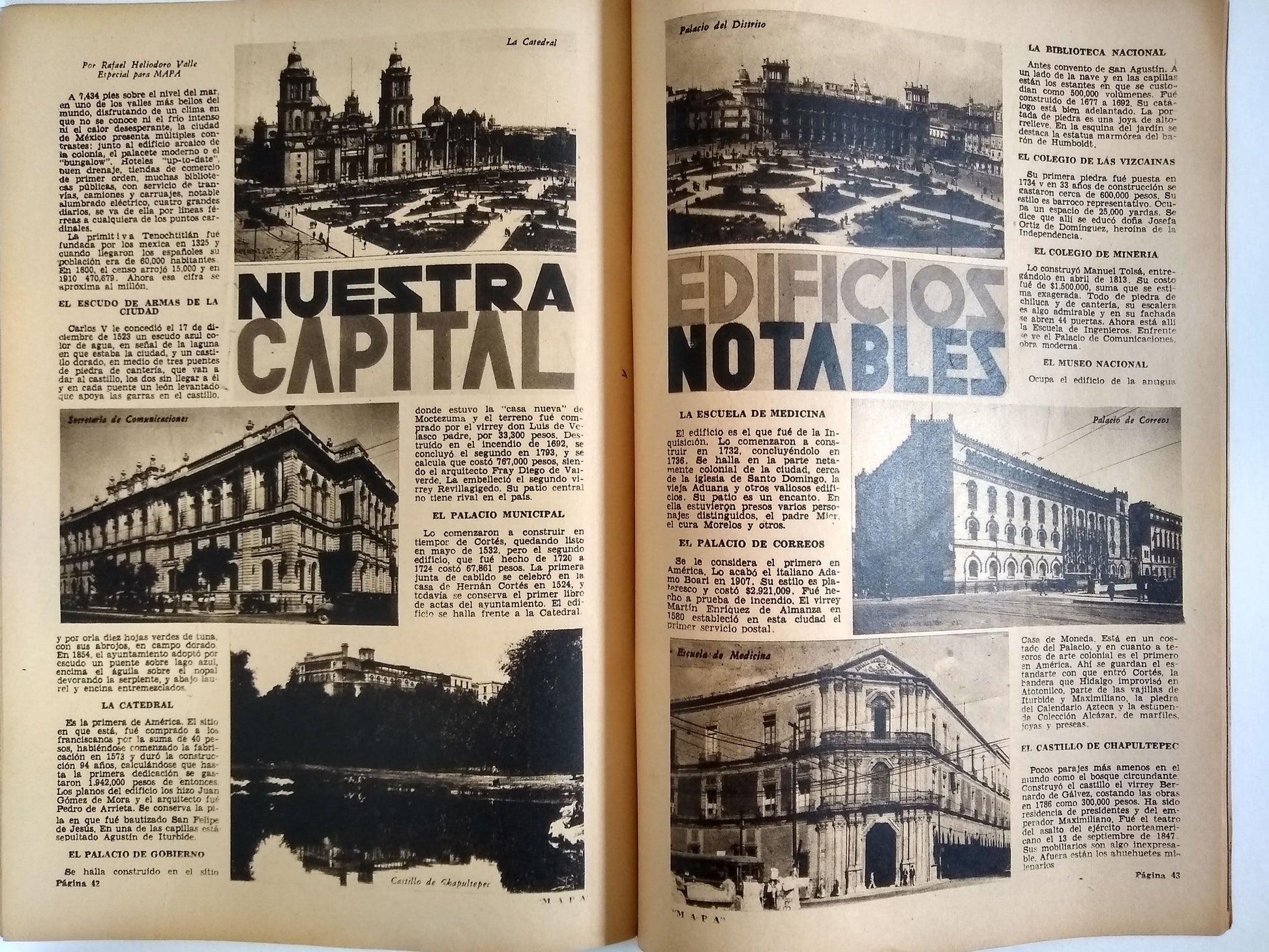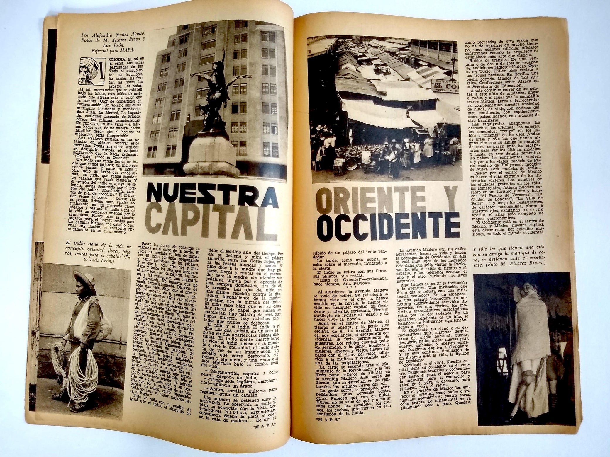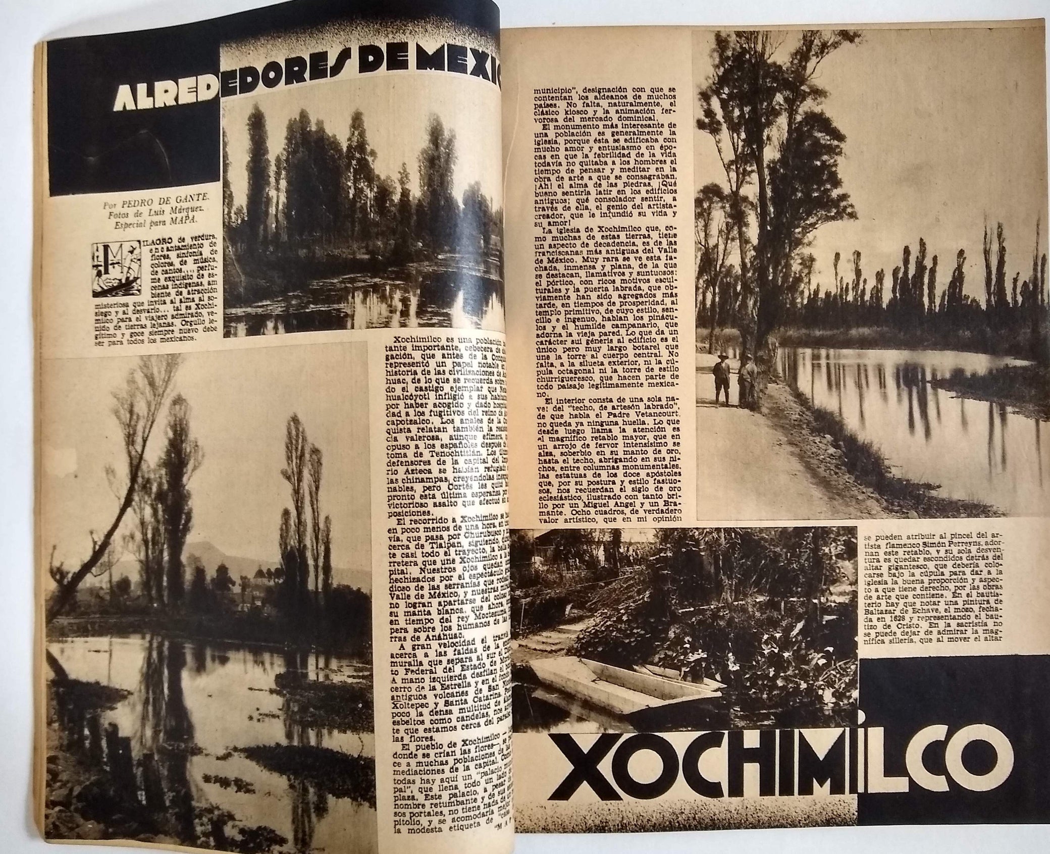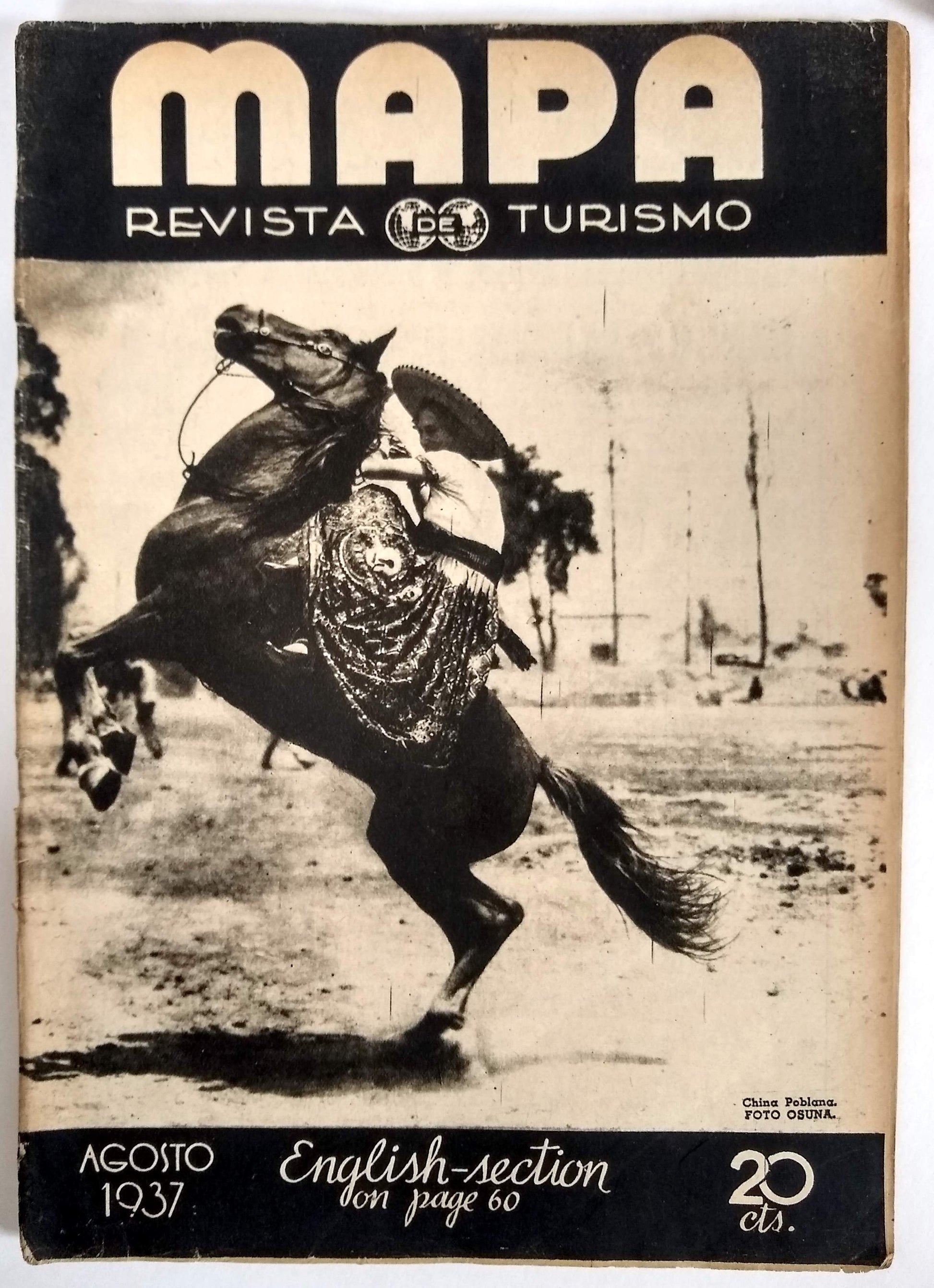 Tourism emerged during the Cardenas administration as a post-revolutionary industry that fused nationalism and modernity by celebrating the grandeur of all things Mexican and fueling local economic growth. “It was an expression of revolutionary reconstruction rooted in capitalism, namely development, urbanization, and personal advancement.” Unfortunately it also proved to be “a kind of imperialism.”* The editor, Francisco Borja Bolado, worked with luxury hotel impresario and AMA founding member Lucas de Palacio to engage an envious list of collaborators for MAPA. The arresting photography of the first five years was chiefly by Hugo Brehme, Luis Márquez, and Rafael Garcia, with additional contributors including Manuel Álvarez Bravo and Gerardo Murillo (Dr. Atl). In addition to accomplished staff writers, issues include articles by Nobel laureate Gabriela Mistral, historian Manuel Toussaint, poet Xavier Villaurrutía and novelist José Rubén Romero. Hand-lettered Art Deco titles within are complemented by period advertisements for cars, hotels, perfumes, auto parts and services, etc.