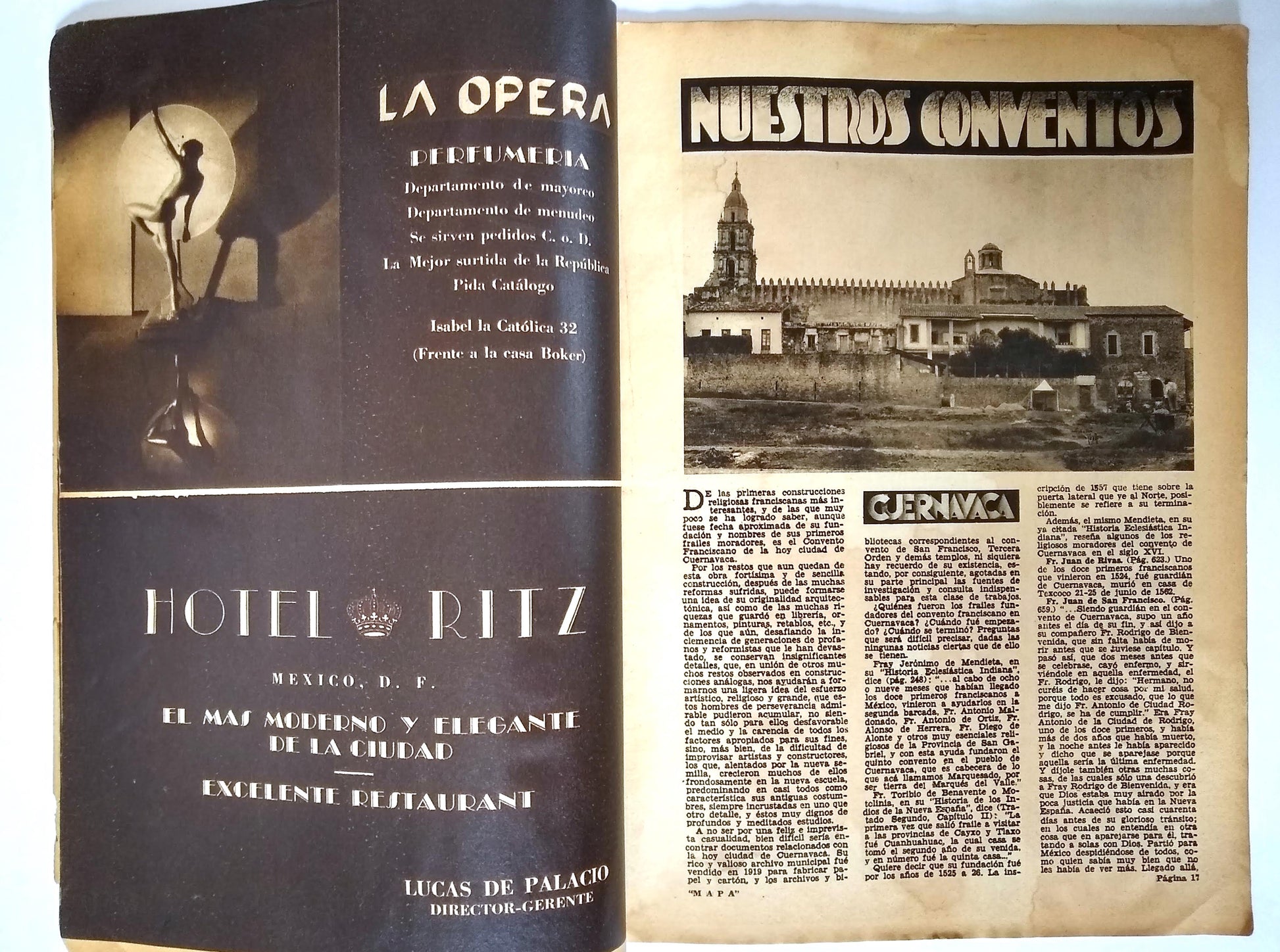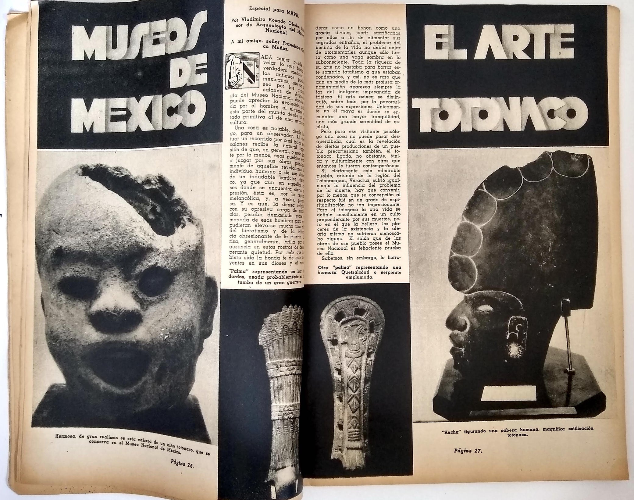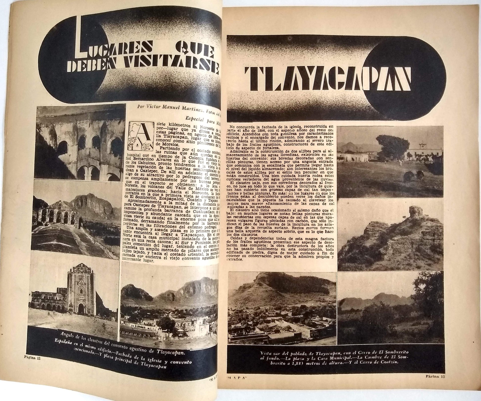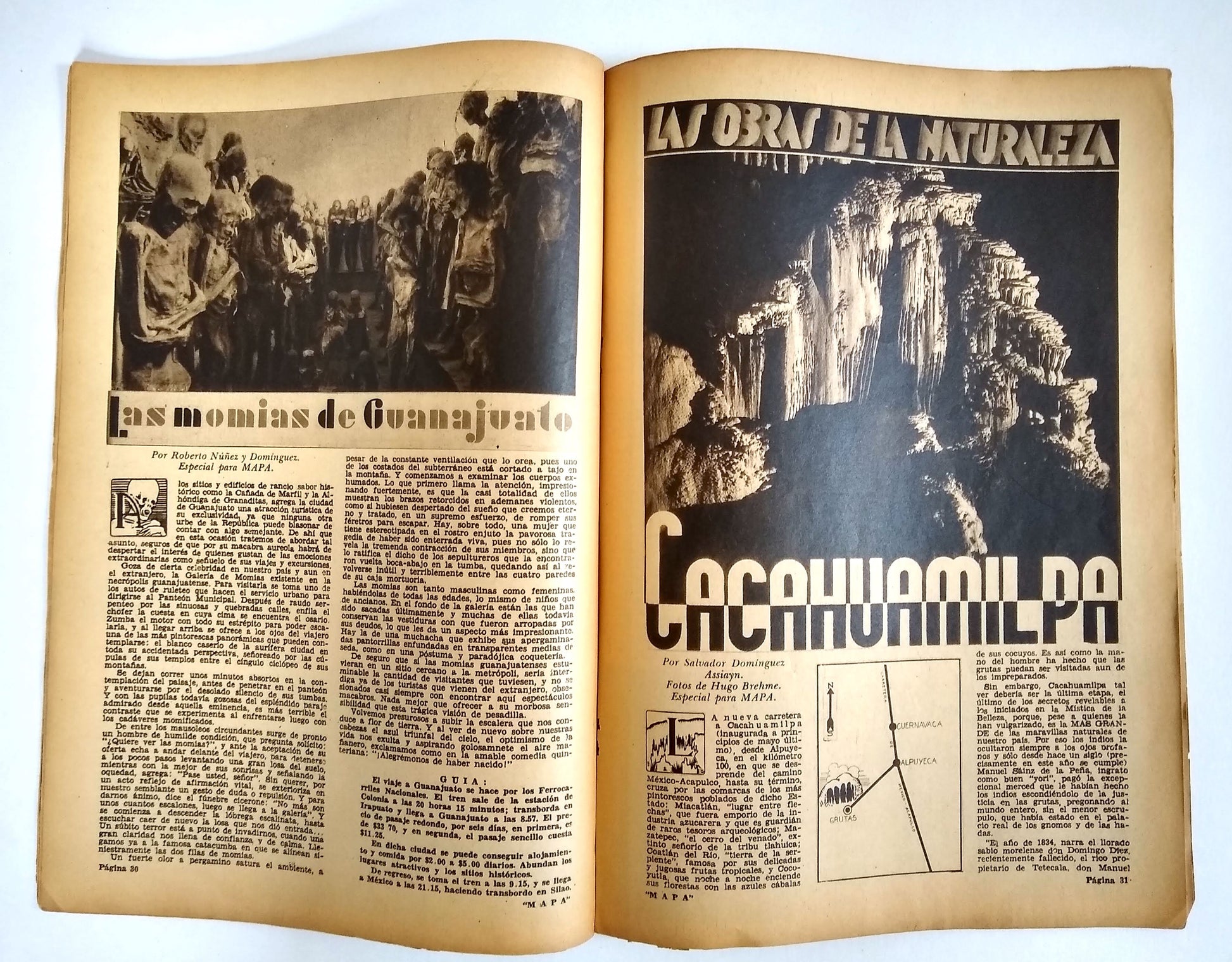 Tourism emerged during the Cardenas administration as a post-revolutionary industry that fused nationalism and modernity by celebrating the grandeur of all things Mexican and fueling local economic growth. “It was an expression of revolutionary reconstruction rooted in capitalism, namely development, urbanization, and personal advancement.” Unfortunately it also proved to be “a kind of imperialism.”* The editor, Francisco Borja Bolado, worked with luxury hotel impresario and AMA founding member Lucas de Palacio to engage an envious list of collaborators for MAPA. The arresting photography of the first five years was chiefly by Hugo Brehme, Luis Márquez, and Rafael Garcia, with additional contributors including Manuel Álvarez Bravo and Gerardo Murillo (Dr. Atl). In addition to accomplished staff writers, issues include articles by Nobel laureate Gabriela Mistral, historian Manuel Toussaint, poet Xavier Villaurrutía and novelist José Rubén Romero. Hand-lettered Art Deco titles within are complemented by period advertisements for cars, hotels, perfumes, auto parts and services, etc.