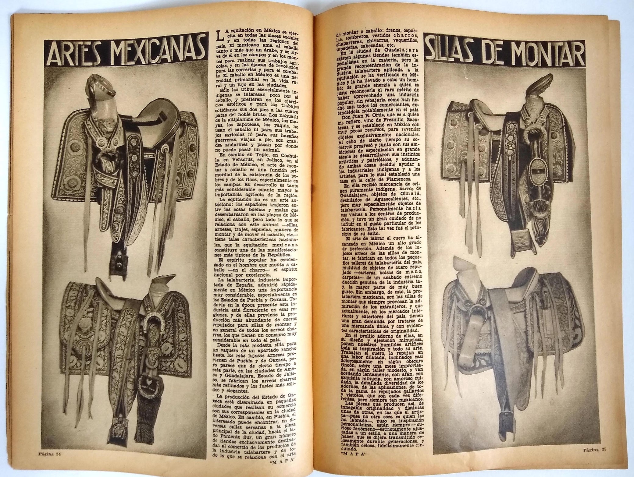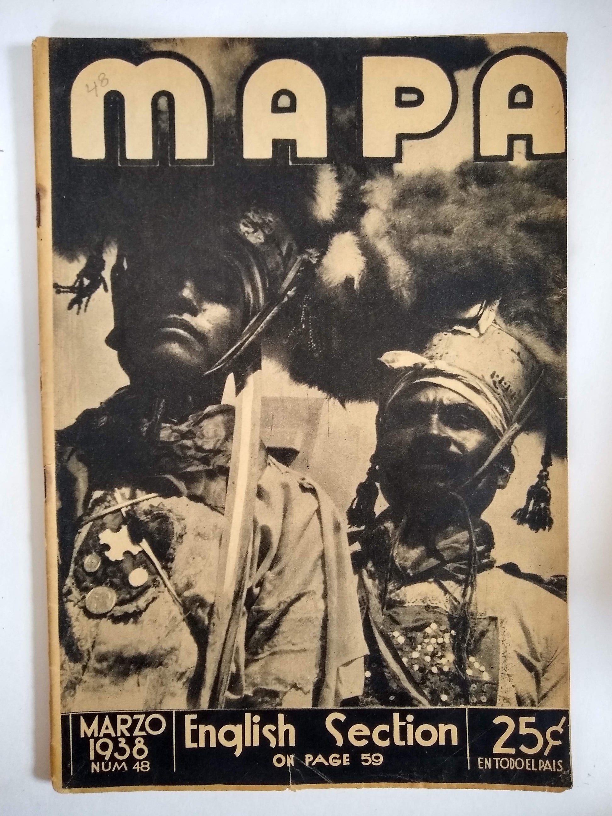 [Asociacio´n Mexicana Automovili´stica]. MAPA: Revista de Turismo. Nos. 1, 3-5, 7-11, 13-22, 24, 26, 31, 34-35, 38-46, 48, 52-54, 56-59, 61-62, 78, 80, 88, 108, 114. [subtitle varies]. Mexico, D.F.: Editorial Mercurial, 1934-1943. 50 issues incl. two duplicate (nos. 9, 43), 11-¾ x 8 in., most approx. 46-64 pp.; profusely illus., largely by bw reproductions from photos, Spanish with a short English language section in most issues; printed on fragile newsprint, many issues toned or dampstained, small tape repairs, and minor chips or closed tears throughout; pictorial stapled wrappers, stained andor chipped, many with issue number penciled recto, nos. 7, 22, 24, 58, and 61 either loose or with substantial losses, nos. 46, 54, and 56 incomplete.