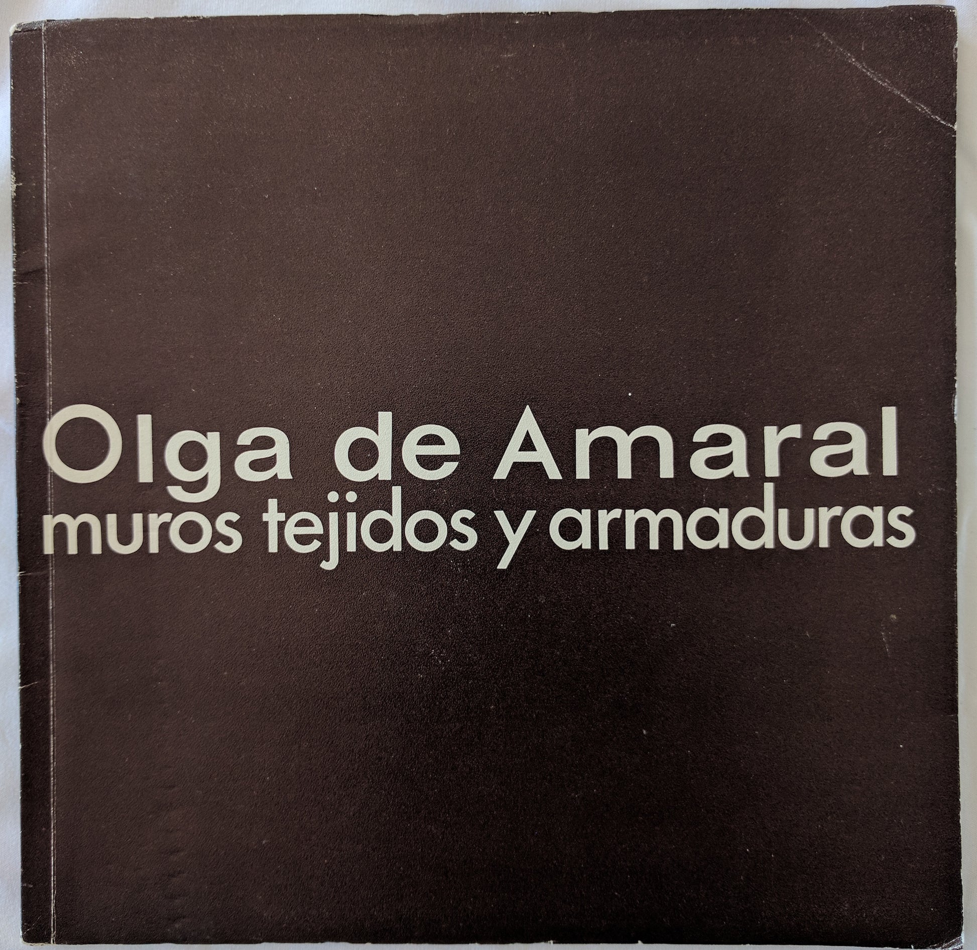 Amaral, Olga de. Muros, tejidos y armaduras. Bogotá: Museo de Arte Moderno Bogotá, 1972. Oblong 4to, [24] pp.; profusely illus. in bw and color, with introductory texts and artist bio; pages comprised of six folding leaves; in paper wrappers, rubbed at edges, otherwise very good. Early catalogue of the renowned Colombian fiber artist, just three years after she was included in MoMA's groundbreaking exhibition “Wall Hangings.” SOLD