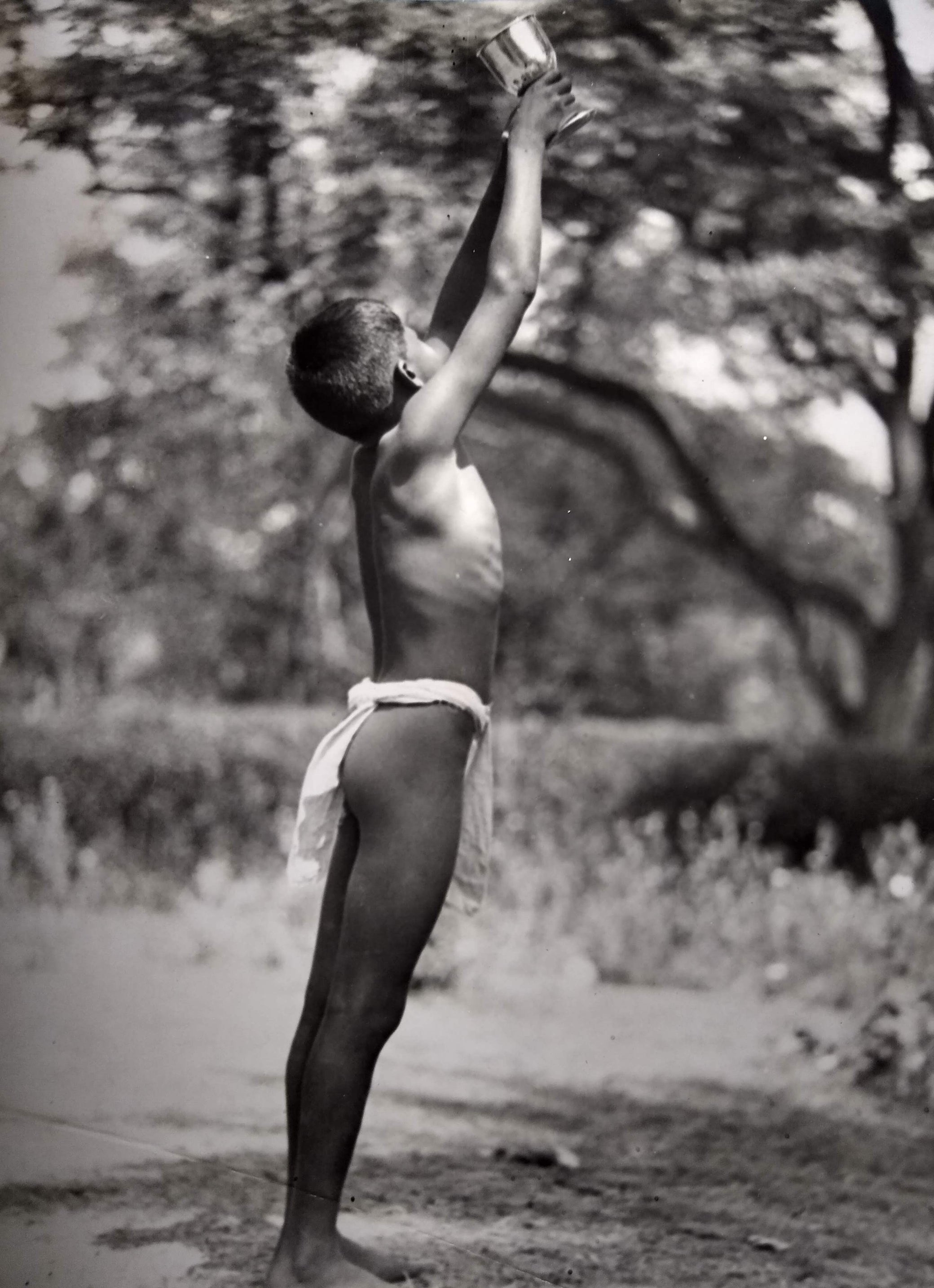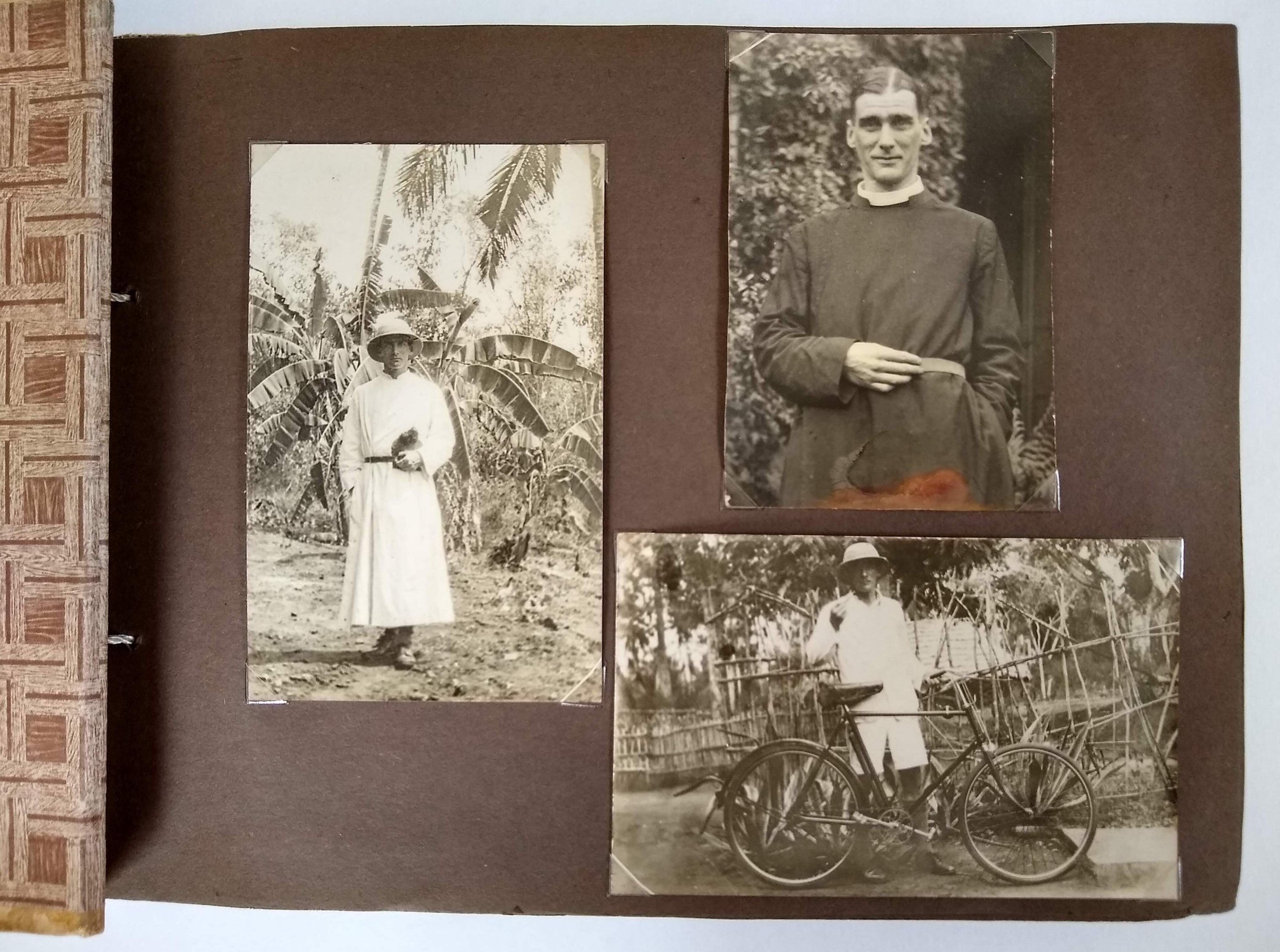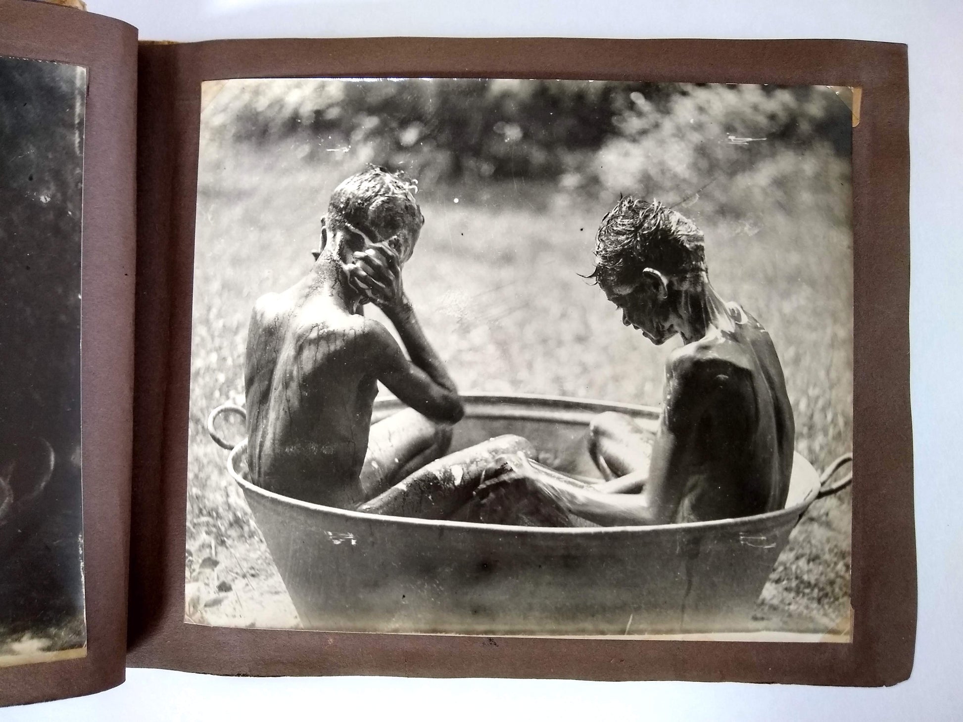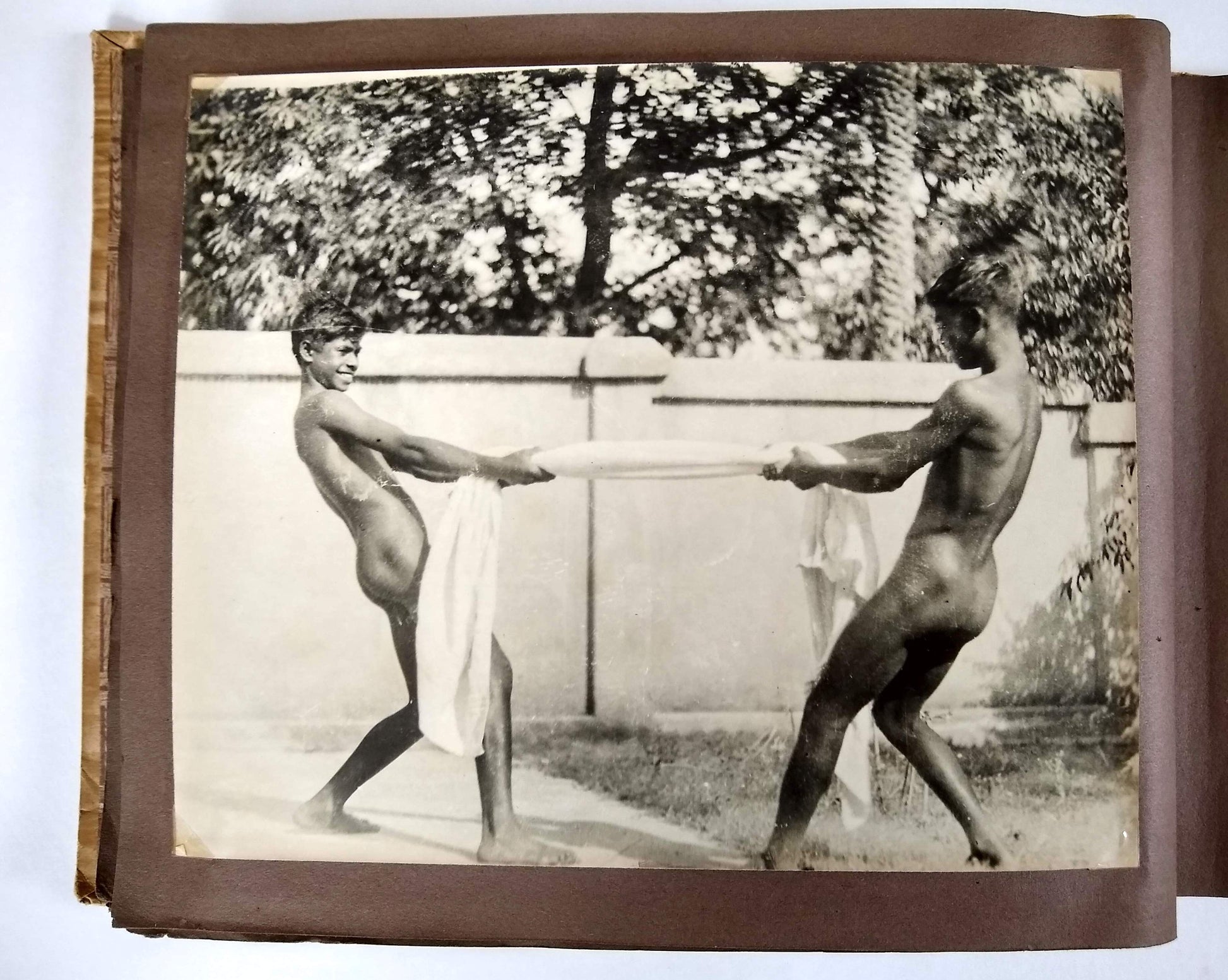 [Warren, Rev. H.S.P.]. Photograph Album, British Honduras [Belize], ca. 1938-1943? Oblong photo album with 43 photographs: 40 larger prints (22.6 x 18.8 cm) and 3 real photo postcards (approx. 14 x 19 cm). The former originally secured one per page via contemporary plastic photo corners which are now fragile or unusable, some images therefore partially or totally loose. Prints VG+. Three items laid-in: 1) a manuscript copy of an extract from Belize Town's The Daily Clarion, Vol. LXXI, No. 135, June 19, 1943, “Farewell to St. Michael's Principal”; 2) an envelope inscribed in the same hand to an unknown reader: “I feel sure you will like to see this as you contributed so generously to St. Michaels”; and 3) a greeting card with a hand-drawn map showing topography of a home as photographed (these photographs not present?). Two pages with empty corners. Remarkable and sometimes unsettling collection of portraits presumed to be taken by Father H.S.P. Warren, an Anglican priest in British Honduras (Belize). From 1938-1943, Warren was the principal of St. Michael's College, a boys’secondary school in Belize Town.* A skilled amateur photographer, Warren produced images with rich tones and self-conscious compositions in a quasi-Pictorialist style. The intimate scenes speak to a familiarity with his subjects, possibly encountered through church-sanctioned camps or other extracurricular activities related to his position at St. Michael's. Although some of the photographs depict children at play, laughing and making eye contact with the camera in European-style clothing, many are posed and profoundly exoticized andor eroticized. These scenes reproduce a troubling, colonial vision of Central American people, and use certain props—a bow and arrow, textiles and loincloths—to represent a generalized “Indian” ethnicity. Warren's imagined indigenous subject was particularly tenuous in the territories of British Honduras. Largely abandoned by the Maya before the European encounter, its self-described mestizo and Creole populations descend from Afro-Caribbean, Garifuna, Maya, East Indian, Spanish, and British ancestry. The vague “otherness” of the pictures reveal how fictive Central American racial identities were created within the European imagination, replacing real, lived hierarchies of economic and political repression. The album is an important example for the evolving study of the relationship between colonial photographers and their subjects, demonstrating both the exploitative potential of the lens and its more nuanced history as a “medium of interaction between white settlers and indigenous peoples, shaping the social processes of identity formation and cultural exchange.” Despite the obvious problems of objectification, photographic archives such as this one have become critically important forms of memory in the context of colonial dispossession and loss. Photographic documentation from Belize in this period is scarce and underrepresented in relevant area studies collections in North America. SOLD*Now part of the coeducational Anglican Cathedral College in Belize City.