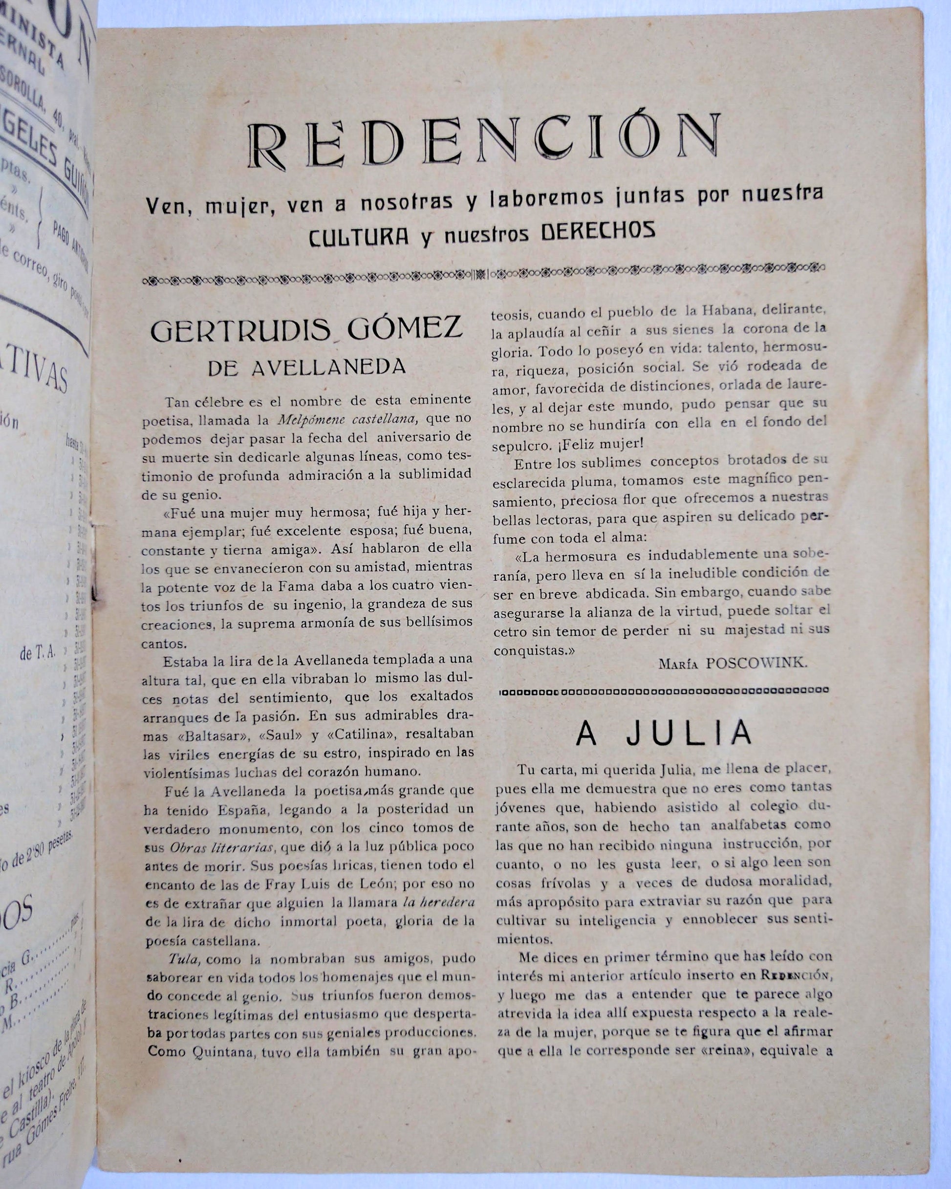 Redención: Revista Mensual Feminista. Año III, Núm. 18