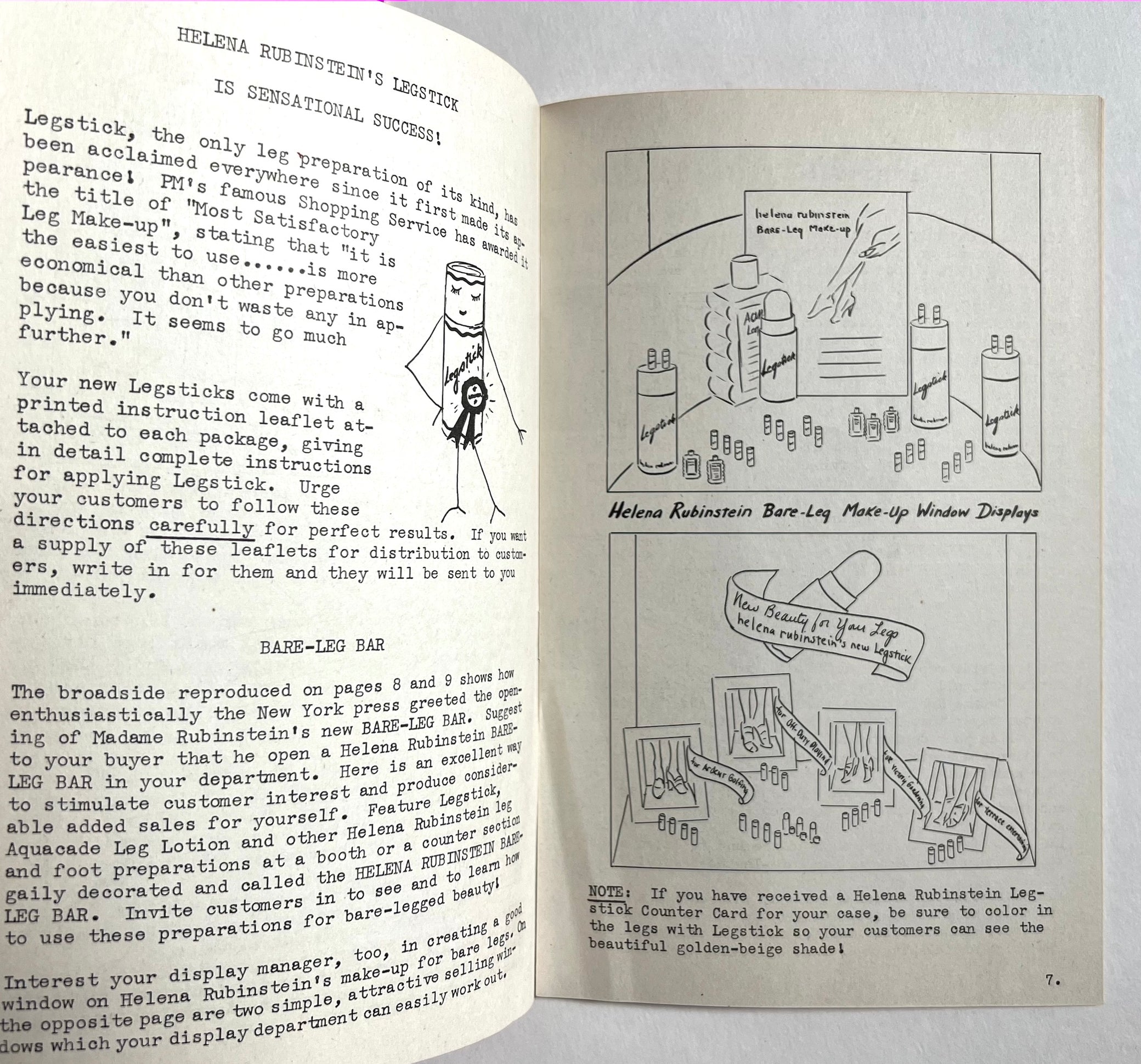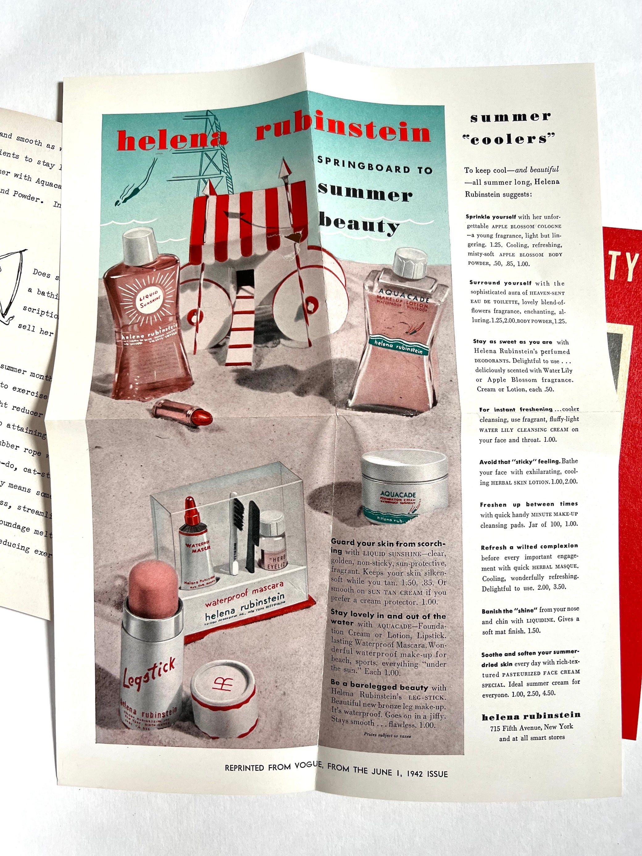 Three otherwise unrecorded issues of Rubinstein's internal sales magazine, introducing new products and pricing, updating ad campaigns, offering prizes for display case design, and distributing sales advice for Rubinstein sales girls. Helena Rubinstein's marketing savvy is widely acknowledged, but we find no reference to these point-of-sale training manuals for selling during the war. “Make Beauty a Patriotic Duty!” One full color reproduction of a Vogue ad laid in.