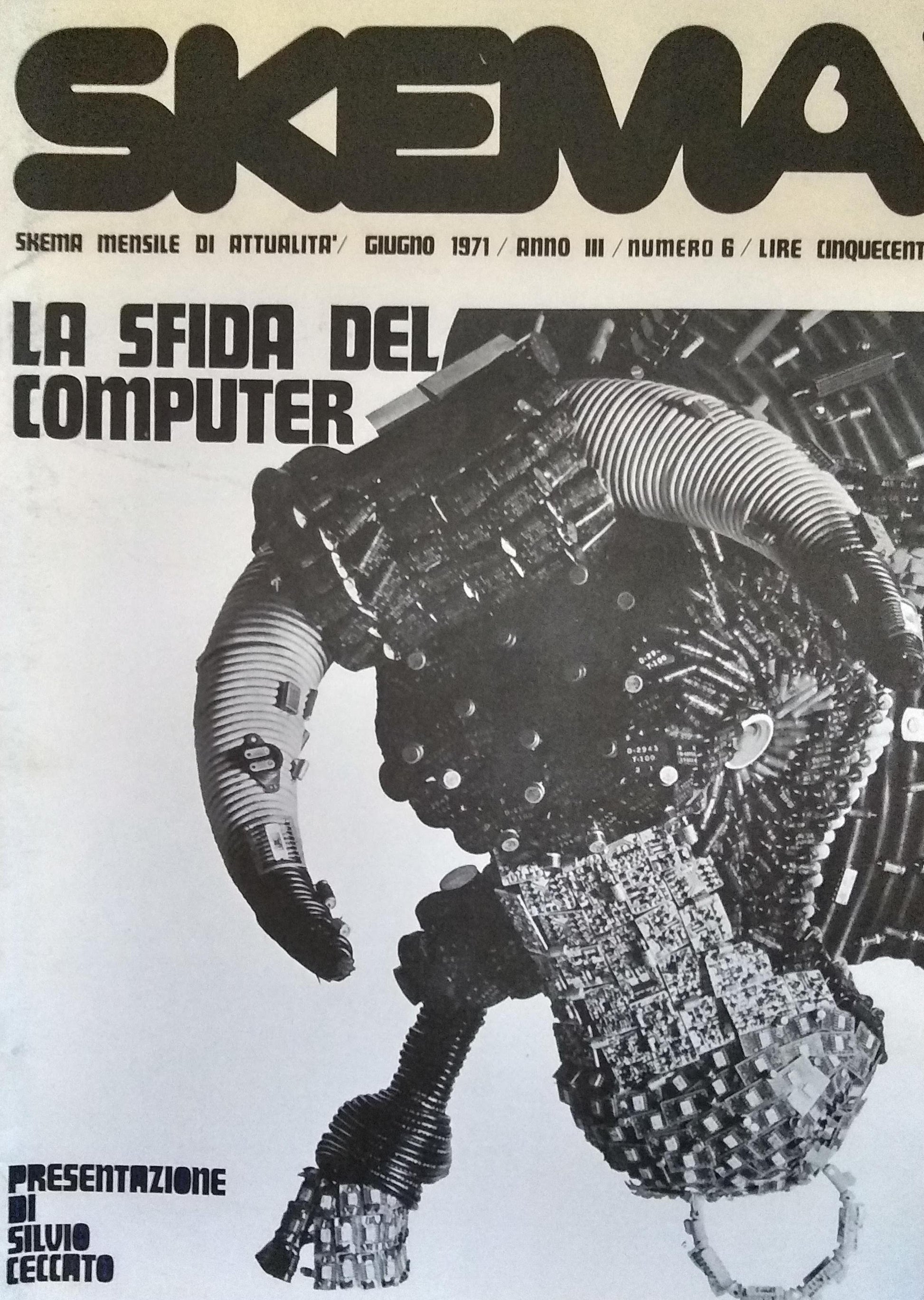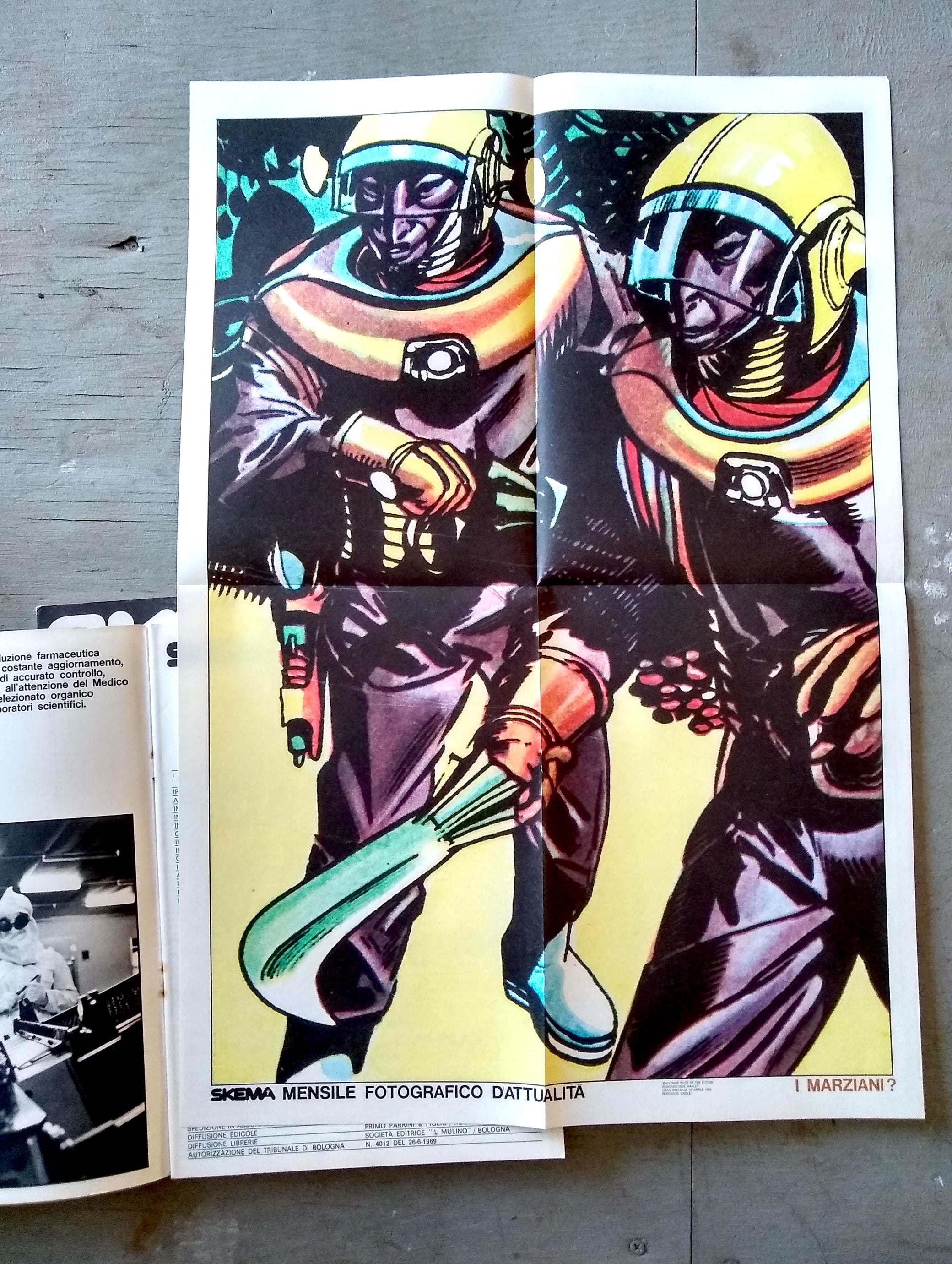 The scarcity of complete runs and bibliographic study has led to confusion about Skema's origins. It is not, as it is often described, a progressive publication with independent social criticism. Instead, it is a deft work of appropriation: produced by Alfa as a promotional tool for its medical and biotech clientele. Skema's inventive design and forward-looking reporting were a creative and subtle advertisement that was discontinued when production became too expensive. We speculate that Skema was the brainchild of Alfa's founder, Marino Golinelli, listed in early issues as a member of the editorial board. Later Golinelli became an important collector of contemporary art and a celebrated philanthropist supporting projects in education, arts, and the sciences. These experimental artistic attitudes were brought to bear on the cataclysmic socio-economic changes affecting lived realities in Italy and abroad. In the case of Skema, they reflect an increased demand for cultural consumption from a new Italian middle class, and the growing sophistication of bourgeois taste. Scarce. OCLC finds one complete run at the University of Rome. A few scattered issues recorded in British, European, and North American holdings (UCSD and UCLA).