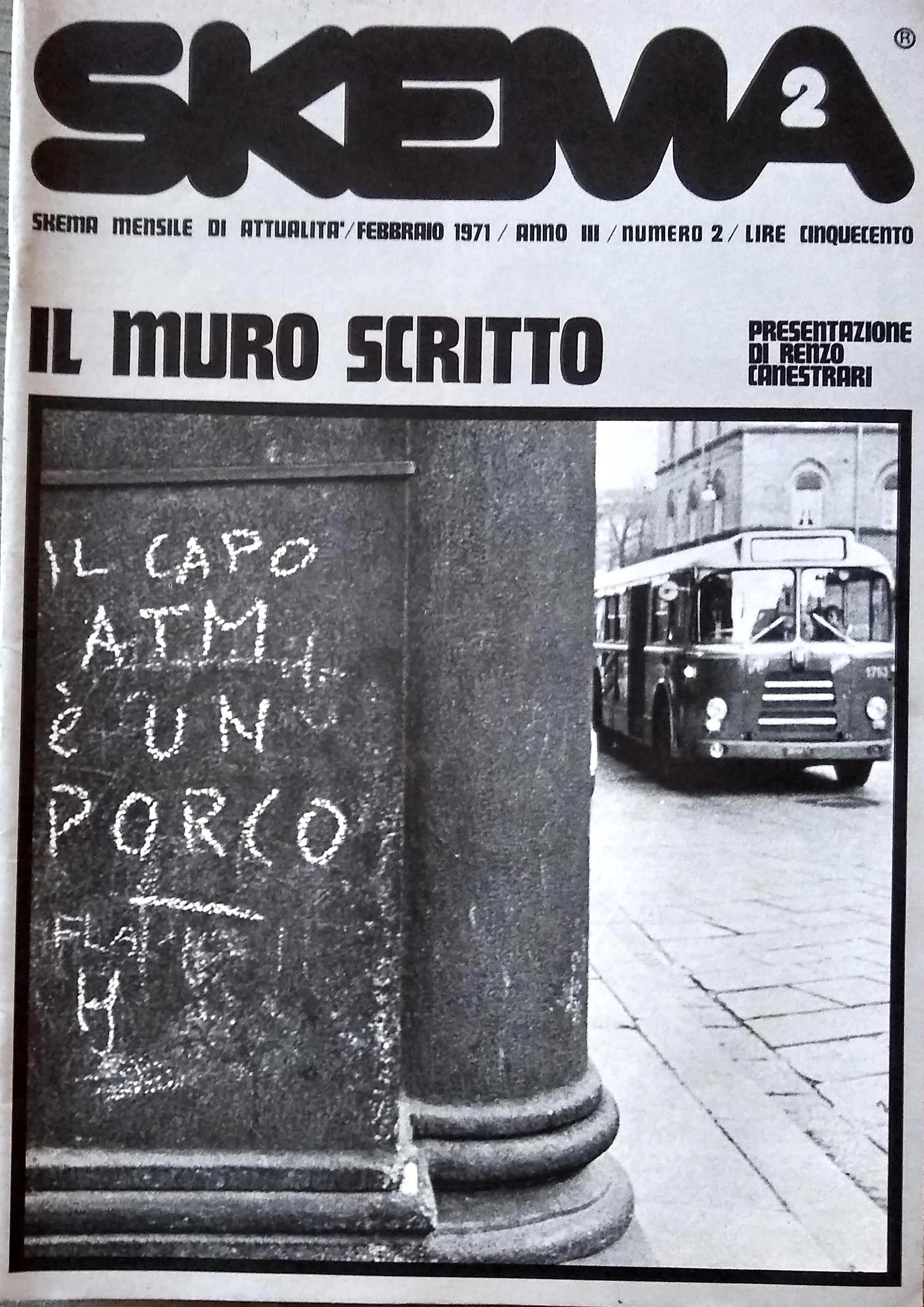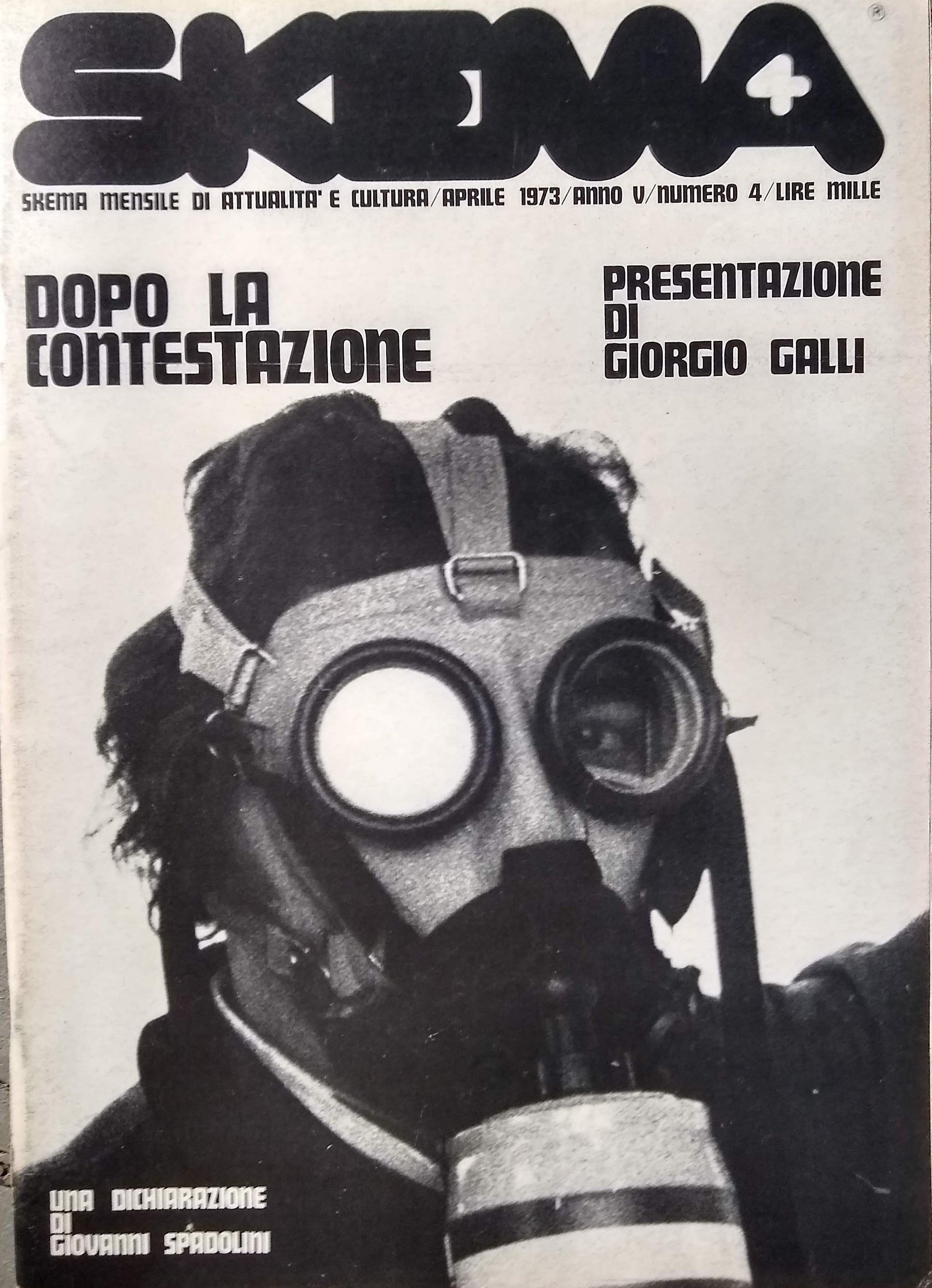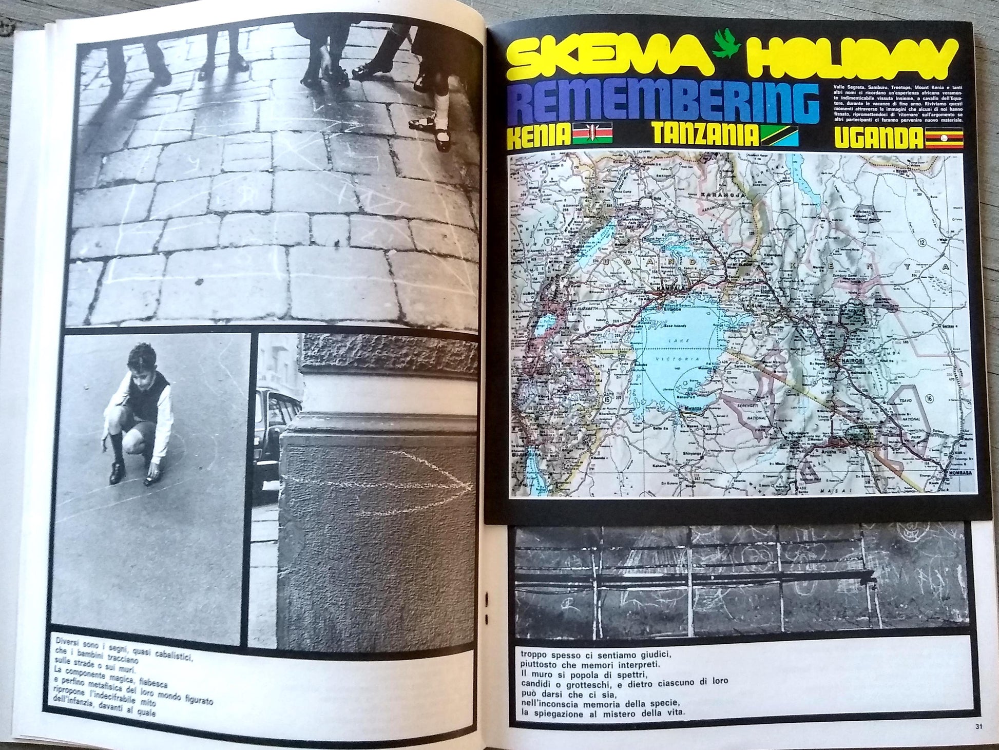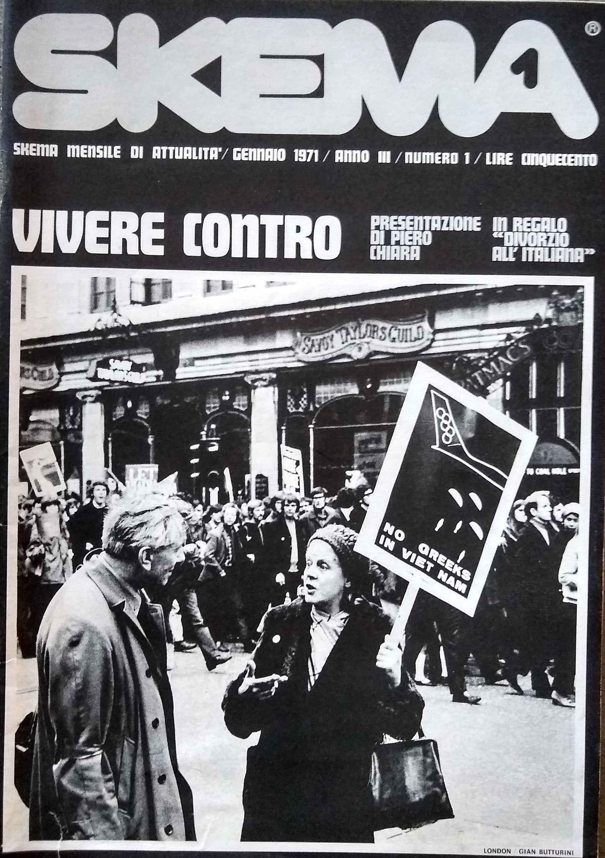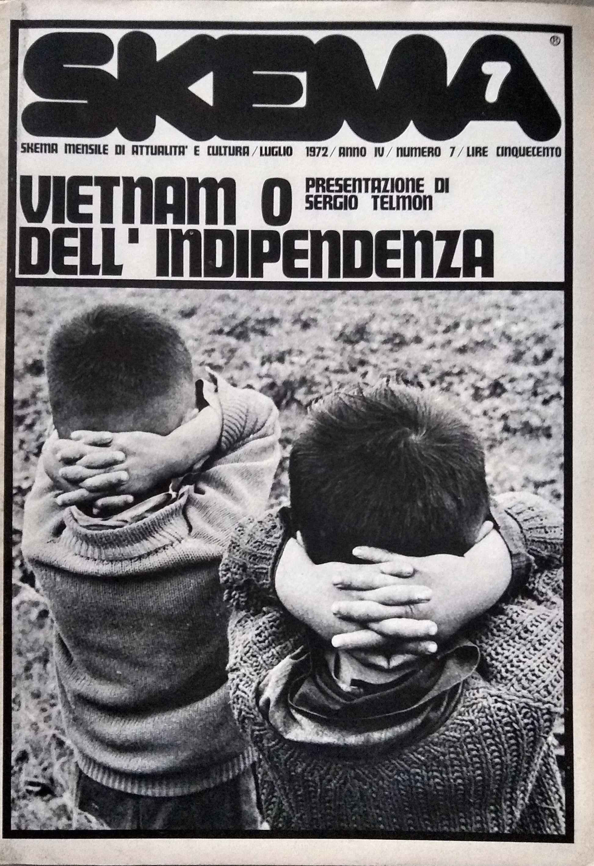 Skema was a forum for unmediated photographic storytelling loosely modeled on the anti-realist movement Gruppo 63. In the first issue the editors state “ideas will be directly and freely provided by images: a medium that suffers from fewer alterations.” Echoing some of the experimentalist manifestos of Il Verri, Skema's editors criticized the perceived transparency of language, freeing meaning to be made instead in the mind of the “viewer.” “Words will remain at the bottom,” with captions and textual interpretation only where world events “most deeply dug a furrow, or a wound, on the crust of common beliefs.”