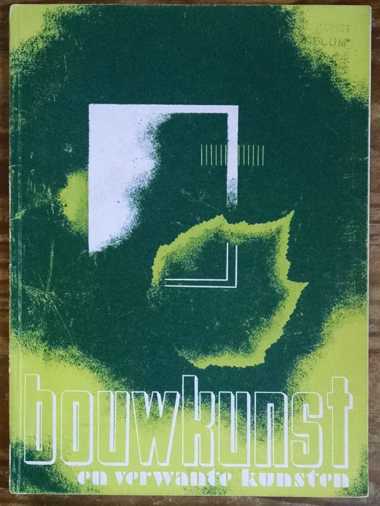 Stedelijk Museum. Bouwkunst en verwante kunsten: tentoonstelling, georganiseerd door de Tentoonstellingsraad voor bouwkunst en verwante kunsten, ter gelegenheid van het 80-jarig jubileum van het genootschap Architectura et Amicitia, van 23 Nov. t/m. 15 Dec. 1935, in het Stedelijk Museum te Amsterdam. Amsterdam: Architectura et Amicitia, [1935]. 8vo, 63, [5] pp.; exhibition catalog of Dutch architecture and applied arts with graphics and typography by Willem Sandberg, illustrated throughout, with orig. illus. color wrpps., a bit rubbed with small closed split at front hinge, unobtrusive contemporary stamp on front cover, “Kunst ...” Includes an introduction by architect M.J. Granpré Molière and checklist of the exhibition. A very rare catalogue with an exemplary abstract cover design by Sandberg. OCLC locates only 1 US holding: Columbia Univ.