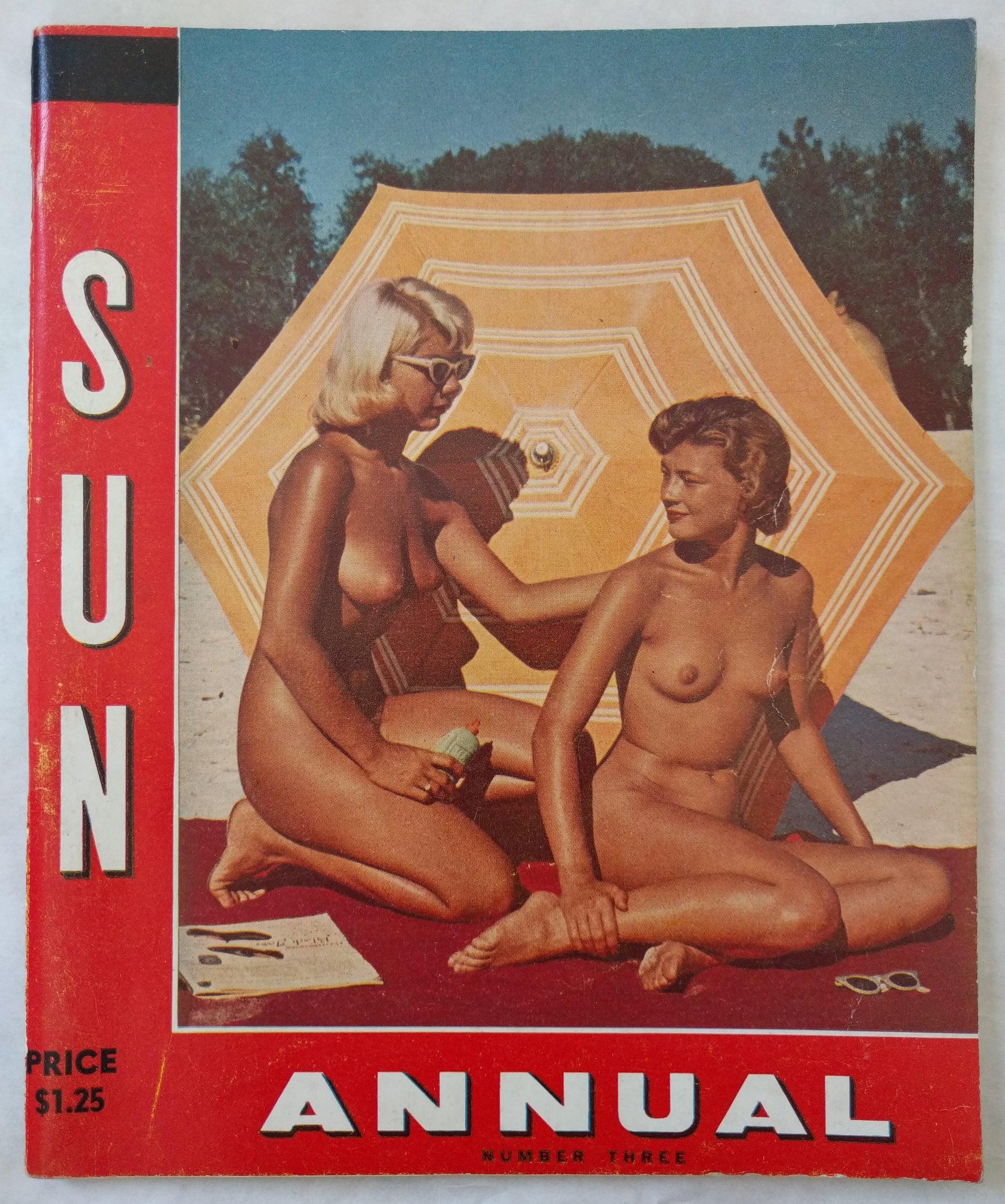 Sun Annual. Nos. 1-3 (all published?). [Mays Landing, NJ]: Sunshine Publishing, [1959-1961]. Square 8vo, each 96 pp.; profusely illus. with b/w reproductions of nudist photography and a few color spreads, in stapled color pictorial wraps, covers lightly worn, else very good.