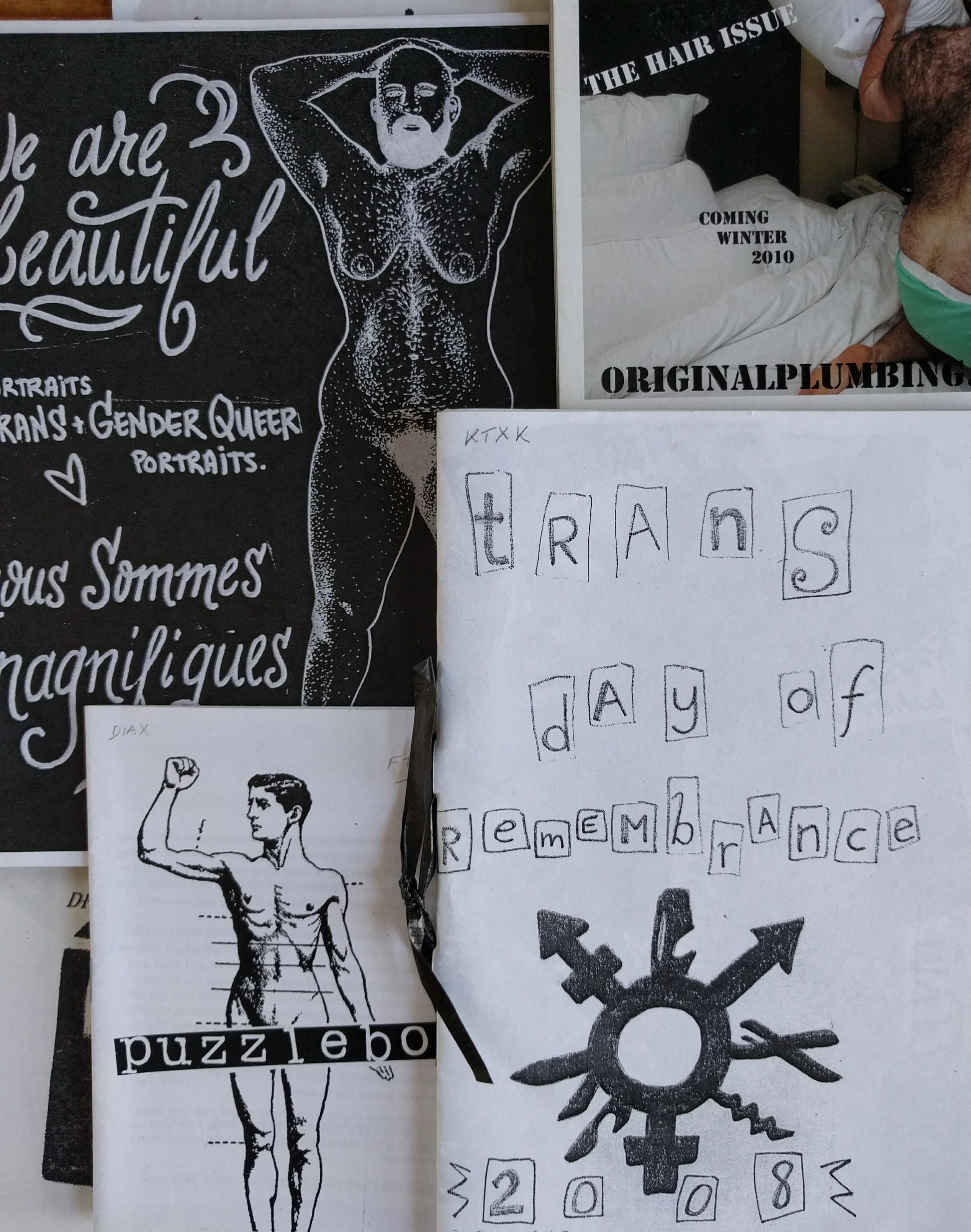 [Transgender]. Collection of pamphlets, zines, fanzines, flyers, chapbooks, and other ephemera related to transgender, transsexual, and LGBTQ activism, youth, literature, health, humor, and social justice movements, 1973-2016 (most 1990s-present). Approx. 52 items: comprised of 34 monographic zines, pamphlets and flyers together with 18 issues of various serials; most monographs and serials 8vo, many 20-40 pp., most side-stapled or folded, most profusely illustrated, many very good or near fine, a few with edge or corner wear, some older examples rubbed or toned. Many examples feature creative writing of trans individuals and describe the personal experiences of trans youth and adults, others focus on trans resources and definitions; sexuality; poetry and artwork; some describe specific political theories including anarchism and gender; trans people and the prison-industrial complex; a few dedicated to mourning trans deaths by suicide and murder; advocating for violent resistance and self-defense; and advertising trans parties or events. Some with collateral civil rights and economic issues including racism, feminism, gentrification, homelessness, prostitution, and drugs. Authors are often pseudonymous and identify as transgender, nonbinary, MtF, FtM, and queer; most American, a few Canadian. Together the collection presents a diverse, intergenerational picture of the evolving scope of North American trans experience and activism. Most items are not recorded in OCLC, a few held only by Univ. of Michigan, still less held by more than a single library in North America. Full list available on request. SOLD