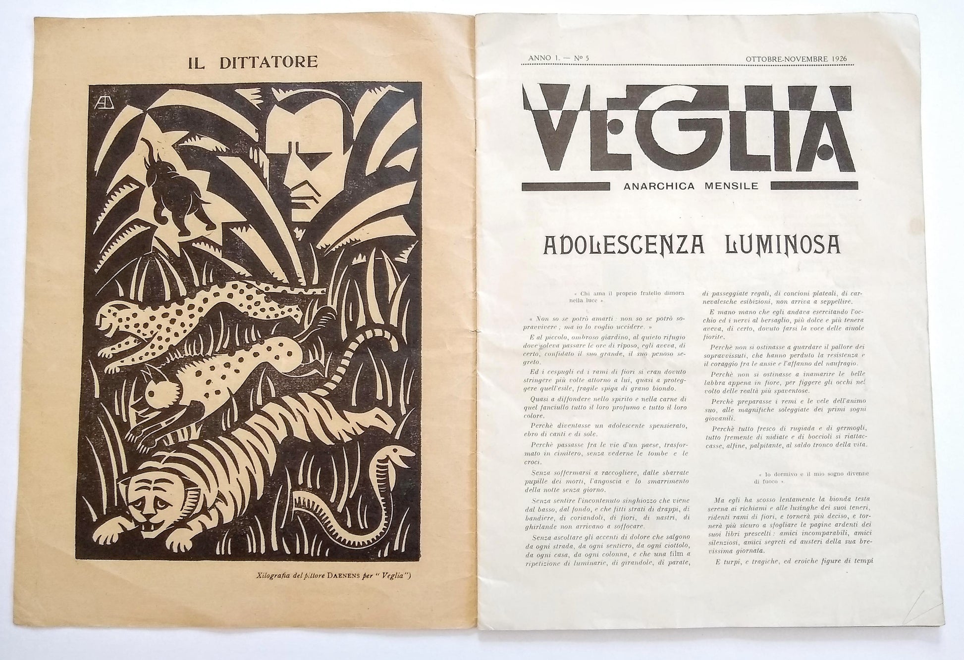 Veglia: Anarchica Mensile. Anno 1, No. 5 (Oct.-Nov. 1926) through Anno 2, No. 7 (Apr.-May 1927)