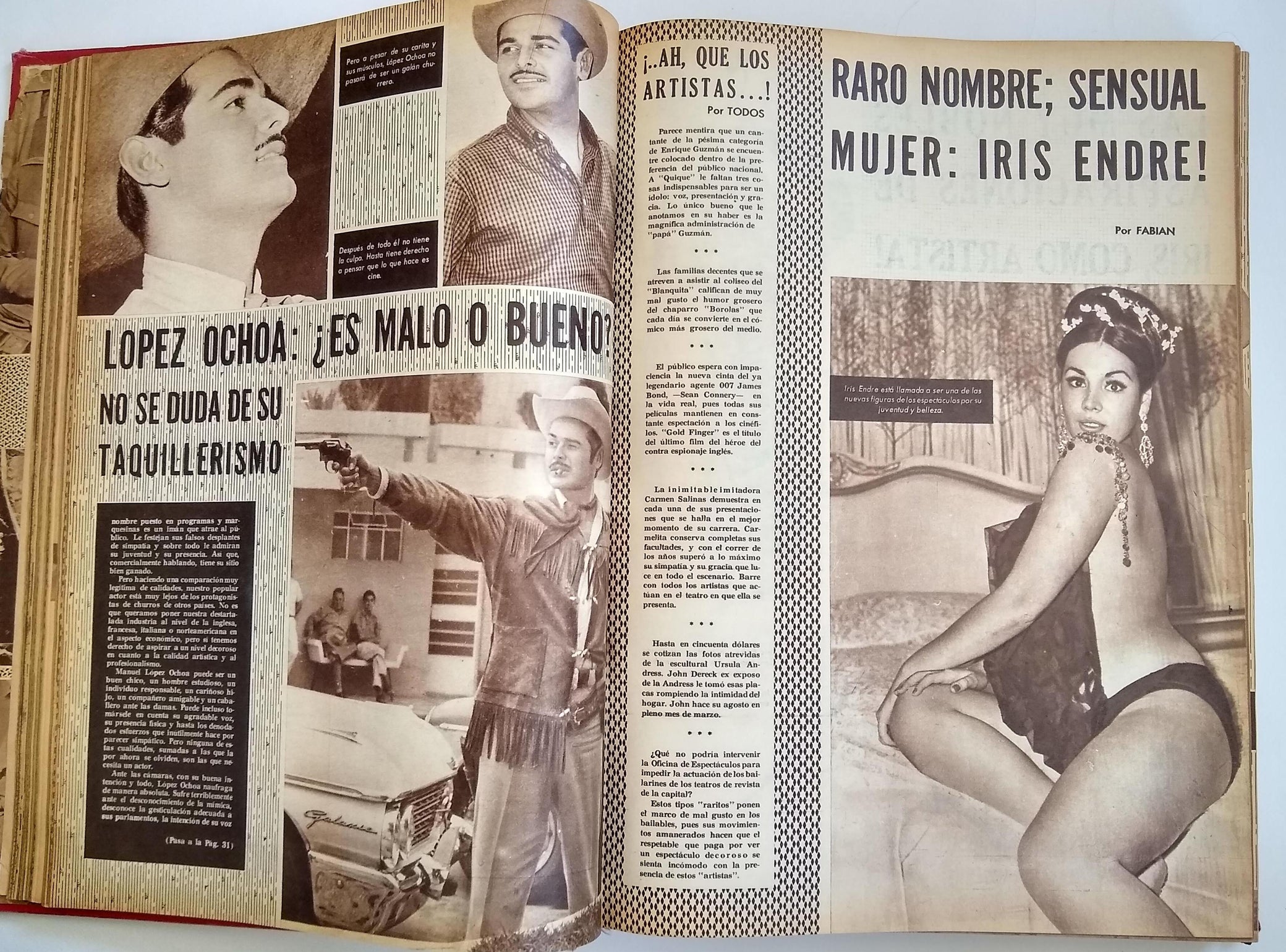 Articles written under pseudonyms report on social issues of the 1960s, including “skirts vs. pants,” and actresses exploited in border towns of Cd. Juarez and Tijuana by Northamerican tourists. Privilege given to actresses of Mexican origin, frequent accusations of malinchismo to those descriminating against Mexican beauties.