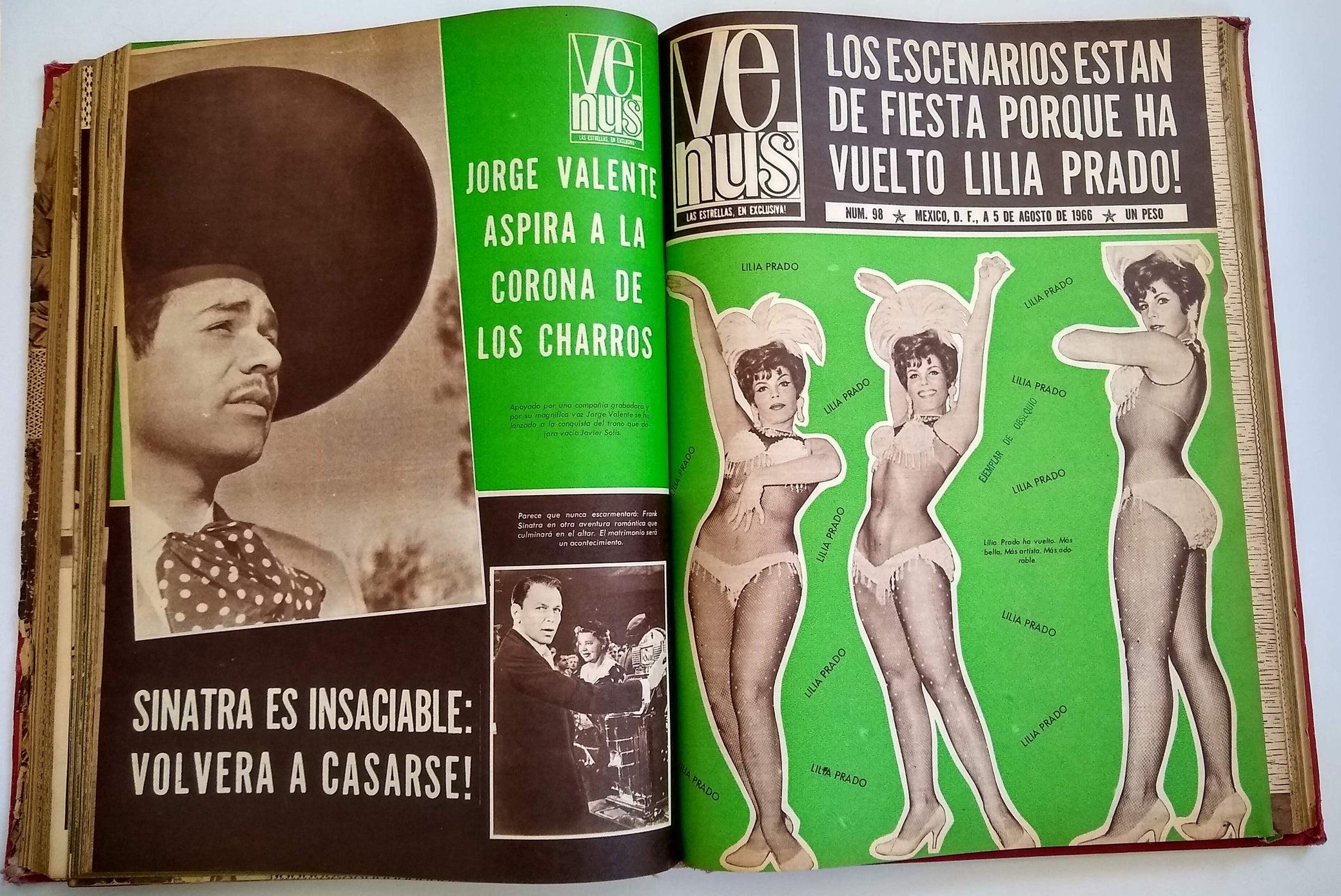 Venus follows Samayoa's successful graphic formula at Alarma!, with a skillful combination of photography, eye-catching headlines, and gossipy industry columns. Issues are dedicated to well-regarded actresses and singers of the 1960s including Lilia Prado, Maria Victoria, Angélica María, Ana Bertha Lepe, Sonia Infante, Ana Martín Yolanda Montes (Tongolele), and Gina Romand. Retrospectively Venus documents a generation of women whose work on Mexploitation films has largely been forgotten. These include Mary Esquivel, Rossy Mendoza, Mayte Carol, Angelita Castany, Grace Polit, Marga Lopez, Ana María Fernández Pomar, Elsa Cárdenas, Eva Norvind, Jeanine Acosta, Fanny Cano, Maria Fuensanta, Malu Reyes, Vianey Lárraga, Olga Guillot, et al.