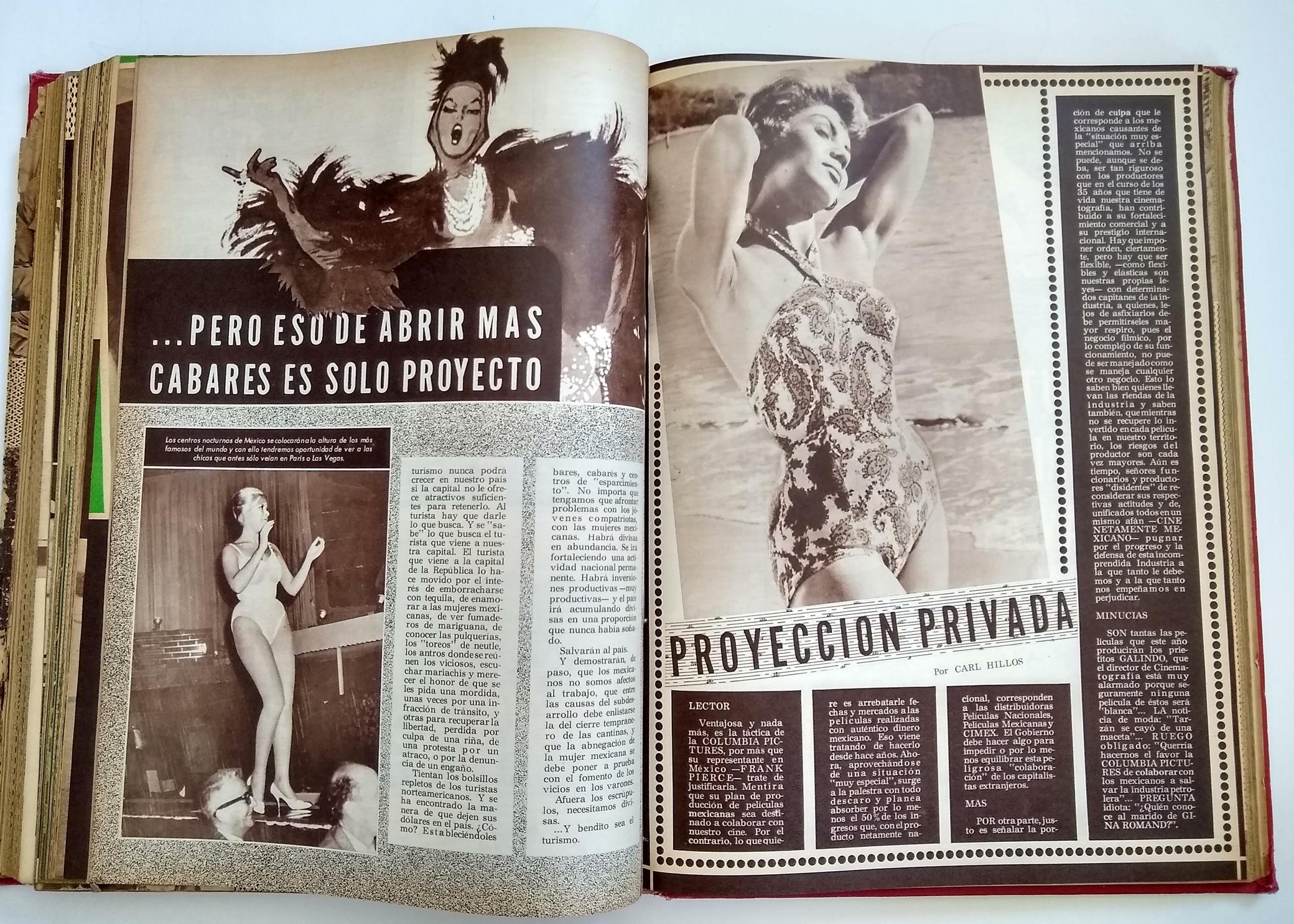 A broken but substantial run of an otherwise unrecorded chiefly photographic tabloid featuring the major and minor actresses of Mexican cinema. Each issue with full-page centerfolds. The editor, Carlos Samayoa founded the iconic tabloid weekly Alarma! in 1963. As the original prensa rojo, Alarma! revolutionized the Mexican popular press and Samayoa (together with right wing publisher Regino Hernandez Llegro) led the era-defining transition to sensationalist journalism.